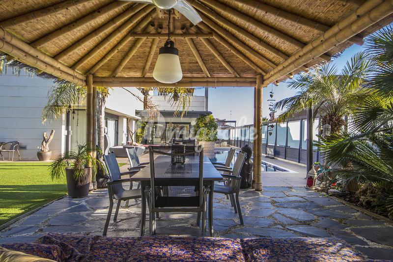 Классическая вилла расположена на первой линии моря в городке Сан-Висенс-де-Монтальт, в пригороде Барселоны. На территории находятся два строения - основной дом и отдельный дом для персонала с гостино