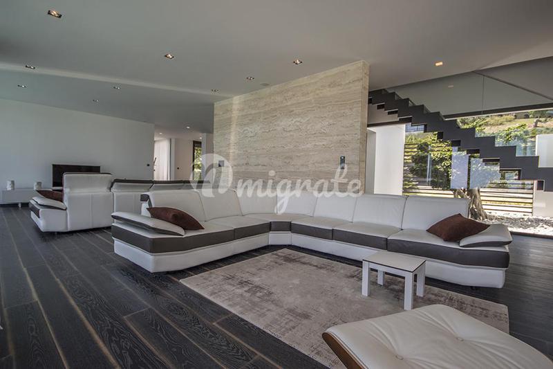 Двухэтажный современный дом в средиземноморском стиле с видом на море и горы в окружении большого количества зелени расположен в частном, эксклюзивном и закрытом жилом комплексе с консьержем в Сан-Вис