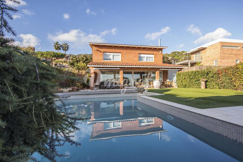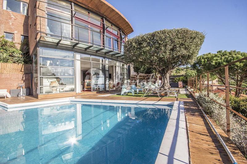 Трехэтажная вилла с видом на Средиземное море находится на охраняемой территории в приморском городке Тейа, на Коста-де-Барселона, в 5 минутах от пляжа. На территории действует теннисный клуб и гольф-