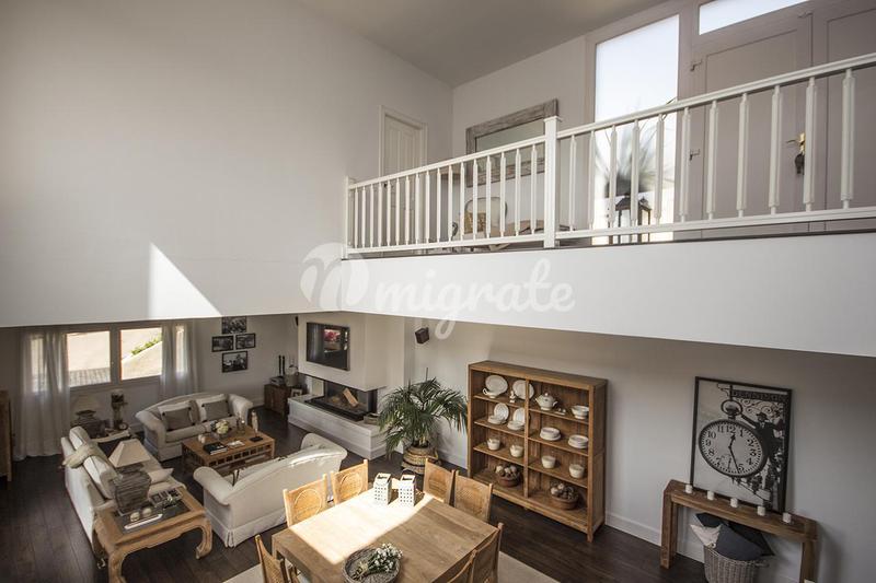 Современный дом в городке Тейа, на Коста-де-Барселона, расположен на охраняемой территории. На первом этаже находится просторная гостиная-столовая с видом на море, оформленная в стиле лофт, полностью