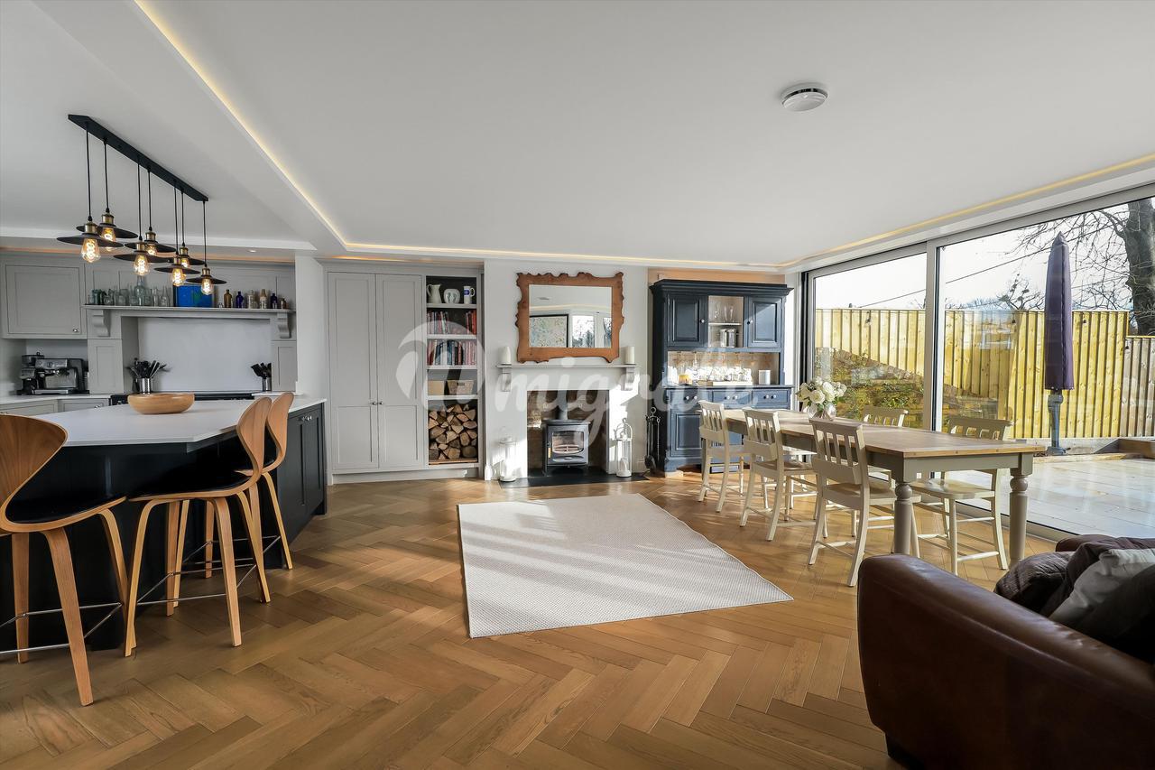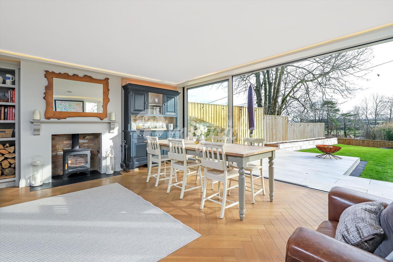 Этот расширенный и отремонтированный дом на возвышенности с приятным видом на сельскую местность удачно сочетает в себе социальную и плавную планировку с хорошей отделкой повсюду. Сердцем этого впечатляющего дома является красивая кухня / столовая открытой планировки с раздвижными дверями в гостиную, создающими замечательное и гибкое пространство. Из кухни на террасу, выходящую на юго-восток, ведет стена из раздвижных застекленных дверей, создающая стильную комбинированную зону развлечений внутри и снаружи. В этом доме есть несколько замечательных декоративных элементов, включая дубовый паркетный пол, архитектурное освещение и дровяную печь. Кроме того, есть отдельная семейная комната со встроенными полками и деревянным полом, а также гардеробная. На втором этаже главная спальня (с ванной комнатой с душем) имеет большие раздвижные окна с застекленным балконом Juliet с прекрасным видом на сельскую местность. Есть еще три спальни с двуспальными кроватями и семейная ванная комната.
