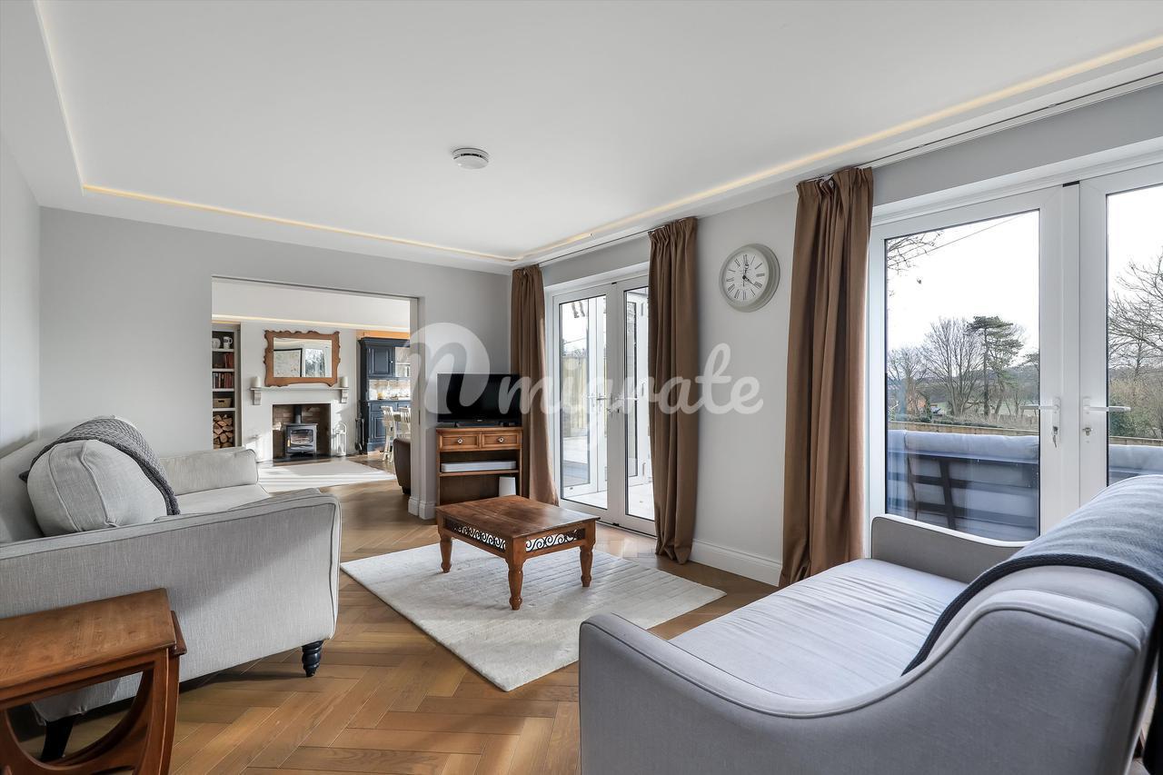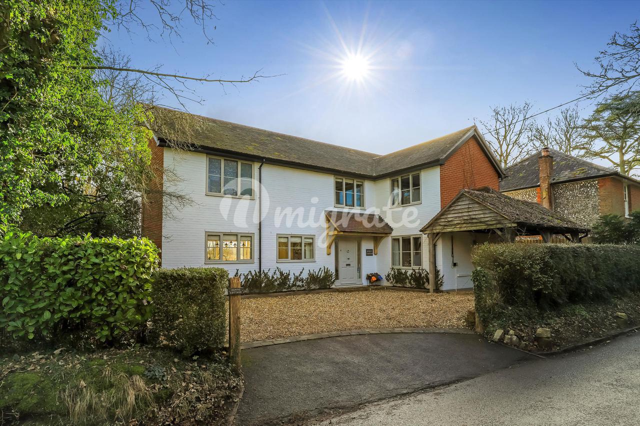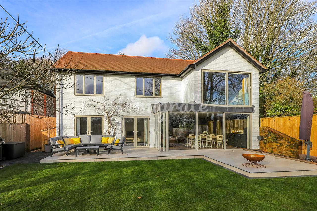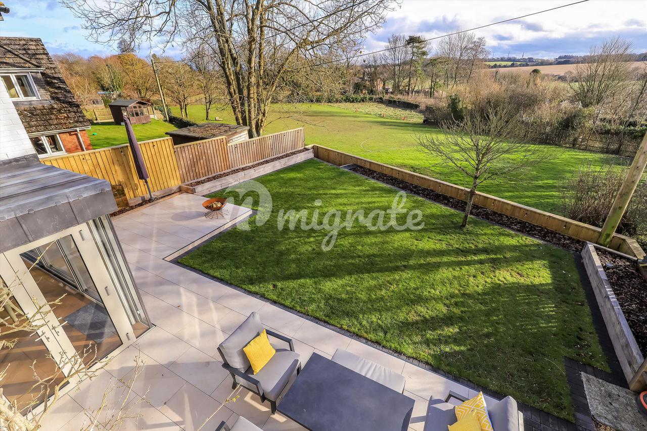 К дому ведет частная подъездная дорога на большую гравийную парковку. В юго-восточном саду сзади есть каменная терраса, ведущая в сад, который в основном разбит на газоны с привлекательными кустарниковыми и травянистыми бордюрами.
