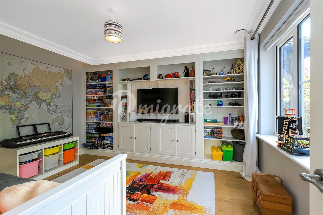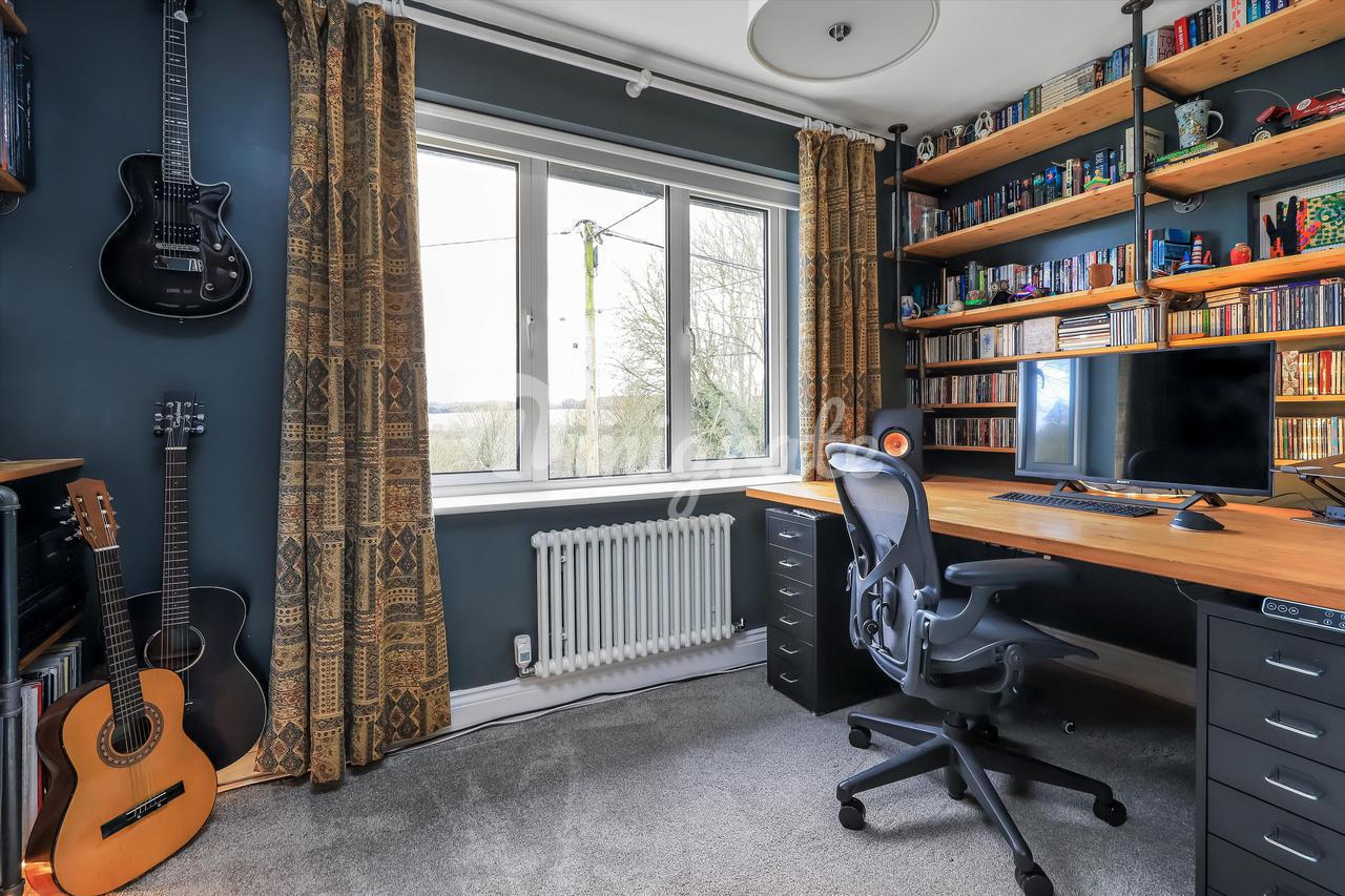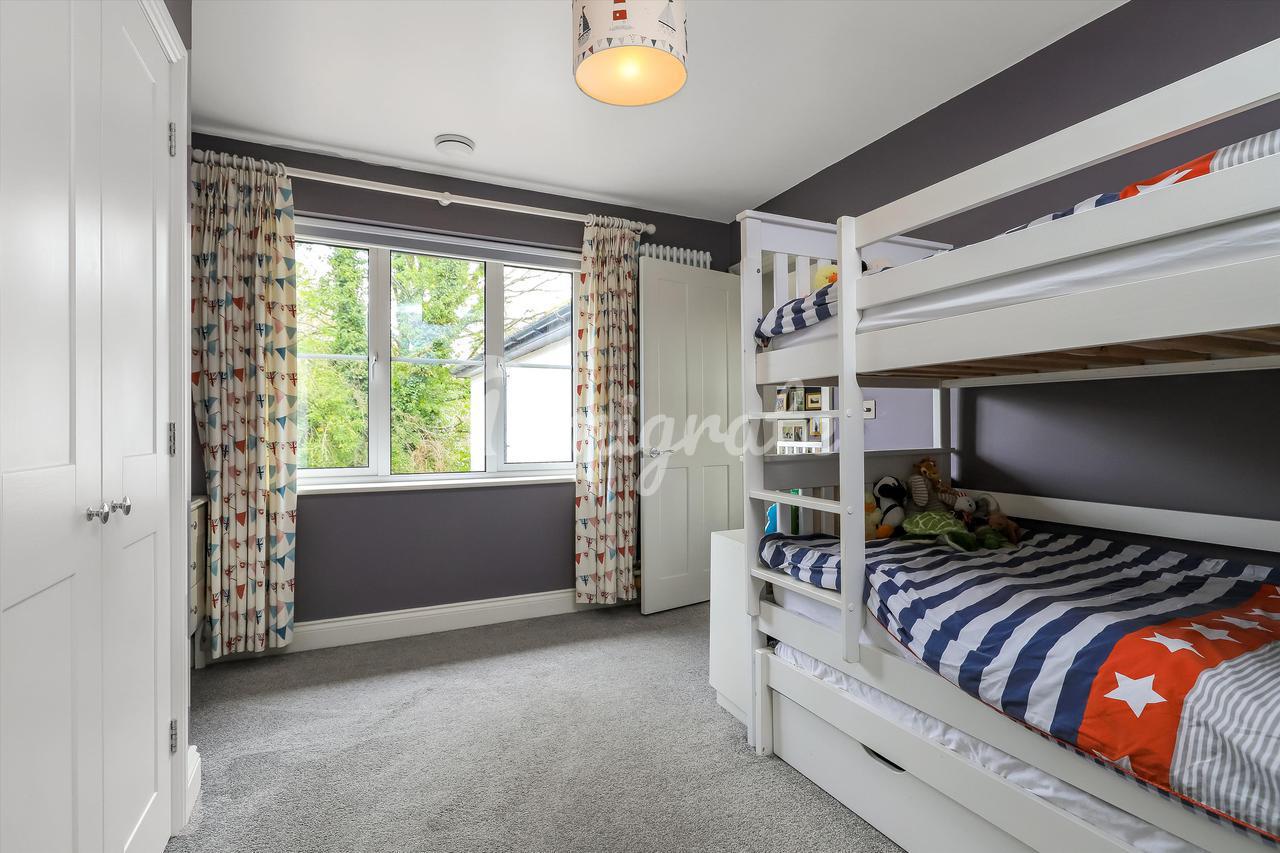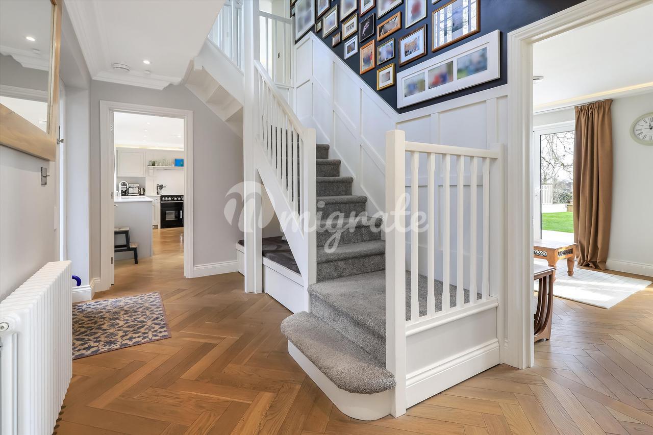 К дому ведет частная подъездная дорога на большую гравийную парковку. В юго-восточном саду сзади есть каменная терраса, ведущая в сад, который в основном разбит на газоны с привлекательными кустарниковыми и травянистыми бордюрами.