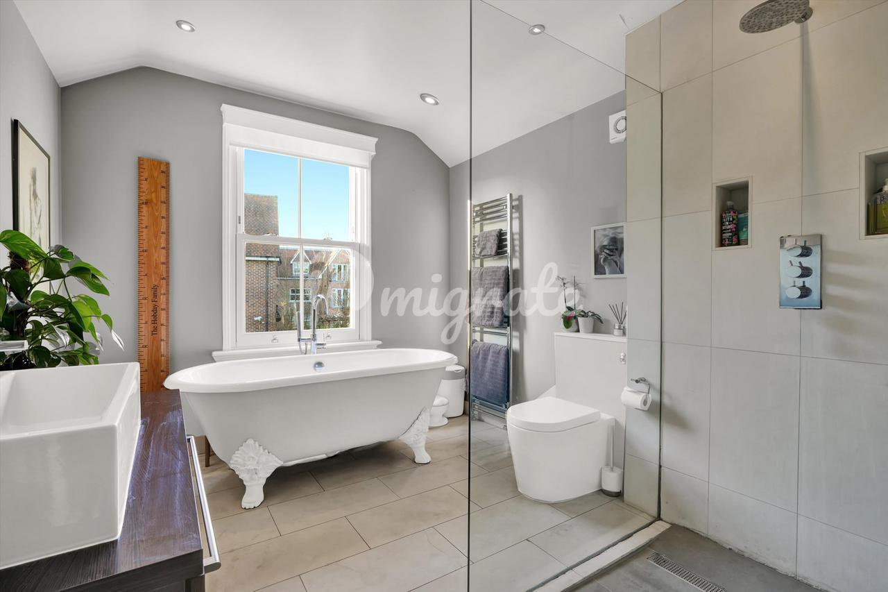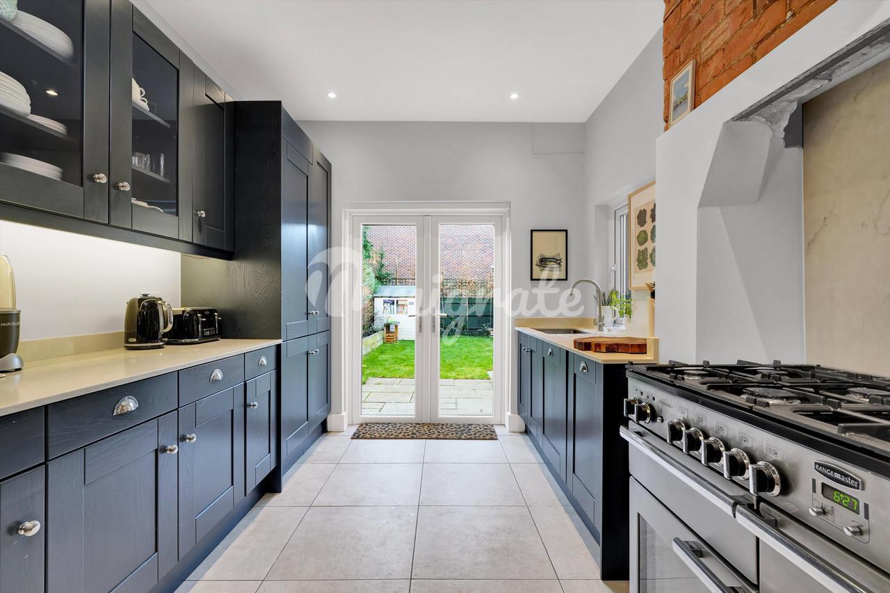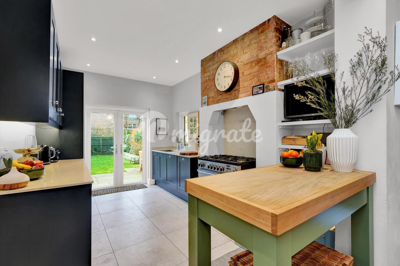 На первом этаже есть очаровательная гостиная с большими окнами и камином, а также кухня/столовая открытой планировки, ведущая в сад, выходящий на запад. Кухня-шейкер находится в превосходном состоянии и очень подходит для дома того периода.