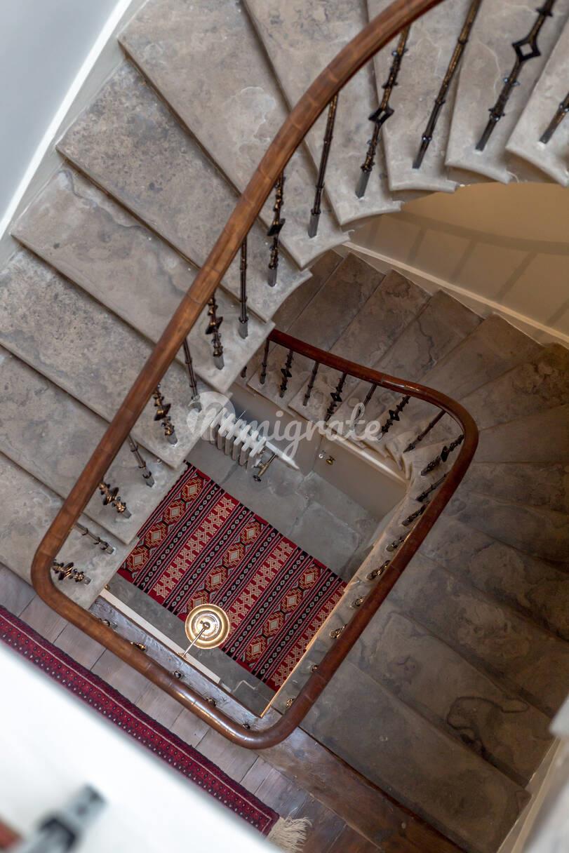 Элегантная каменная лестница ведет на второй этаж, где расположены две спальни с двуспальными кроватями; оба с кладовой, ванной и отдельным туалетом.