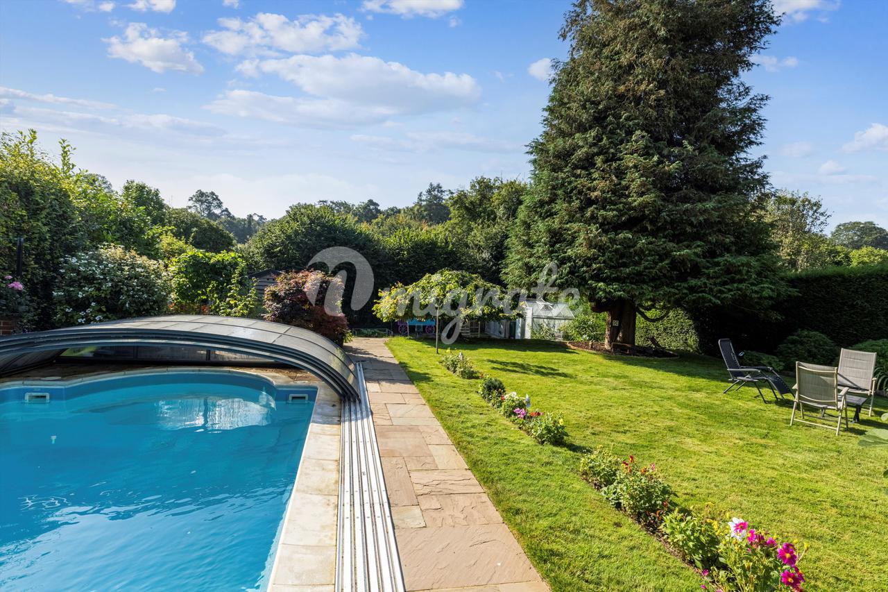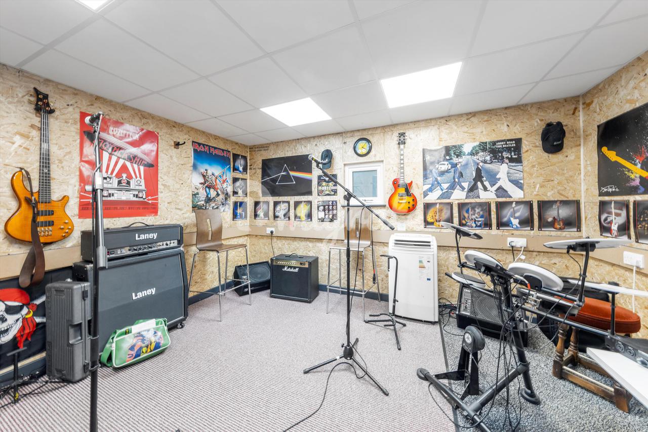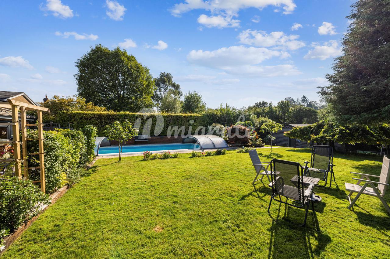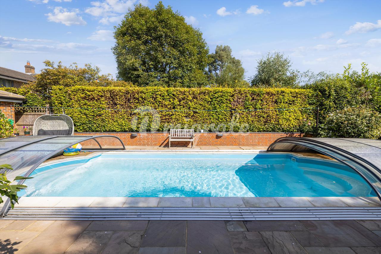 В потрясающих задних садах есть большая каменная терраса, на которую можно попасть через двустворчатые двери из формального жилого пространства. Рядом с ним находится бассейн с подогревом и раздвижной крышкой, что позволяет при необходимости использовать бассейн круглый год. В конце сада находится отдельный домик-студия, обшитый дубом, который был искусно спроектирован так, чтобы обеспечить отдельный туалет, большую кладовую и собственную музыкальную студию! Также есть отдельная игровая площадка для детей, различные кухонные кровати, теплица и дополнительный сарай для хранения дров.