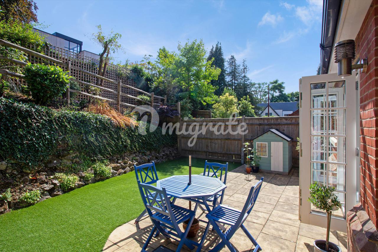 В передней части дома есть два парковочных места и встроенный гараж с электроприводом над дверью. Задний сад предлагает безопасное пространство с мощеной террасой для обедов на свежем воздухе, примыкающей к остальной территории, покрытой искусственным газоном. Личные ворота сбоку обеспечивают доступ к фасаду, с привлекательной каменной стеной сбоку и сзади, участок простирается за пределы возвышенности, огорожен деревянным забором и засажен разнообразными кустарниками, что обеспечивает большую степень уединения в саду.