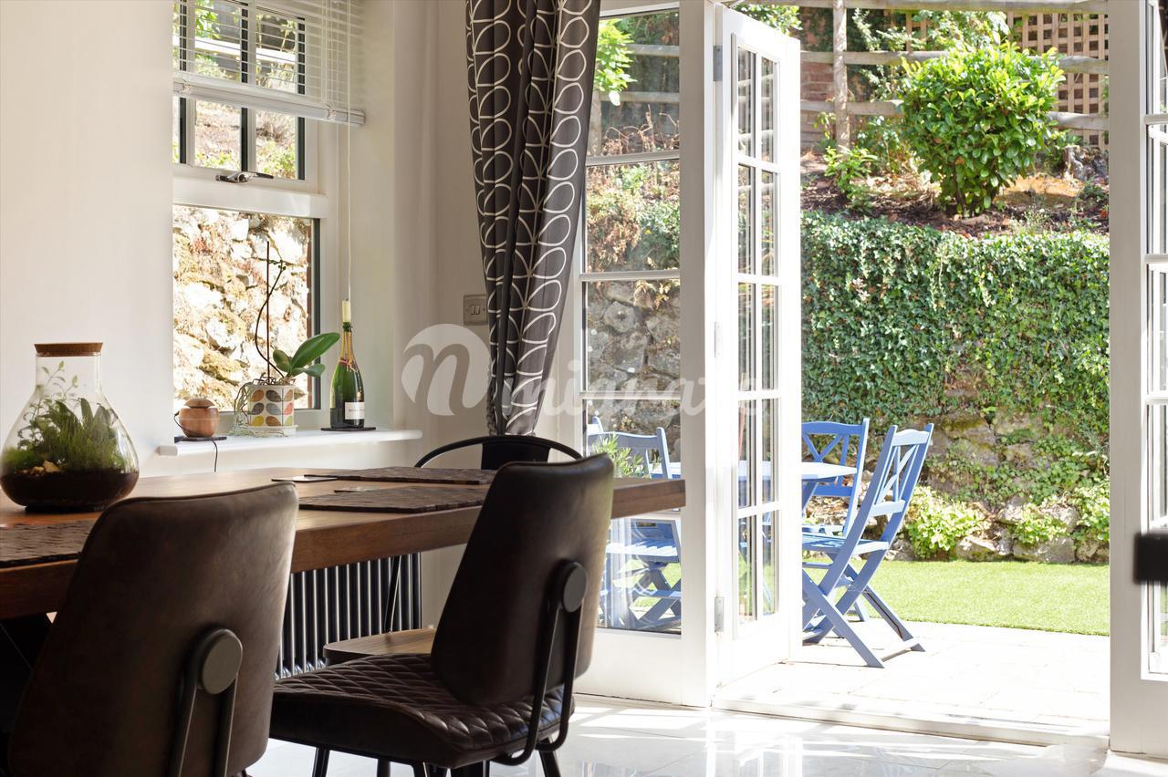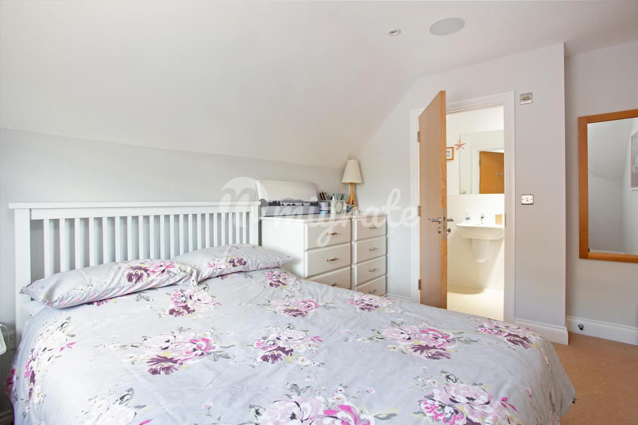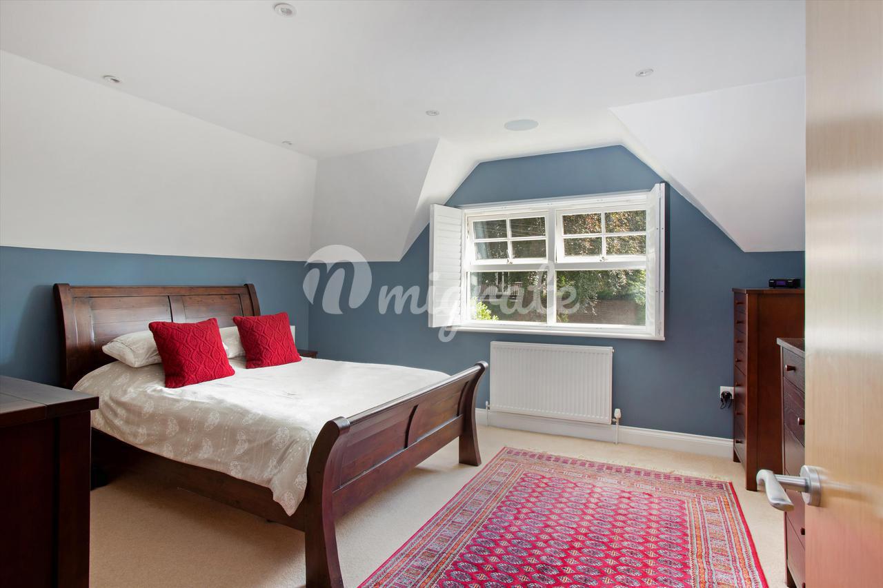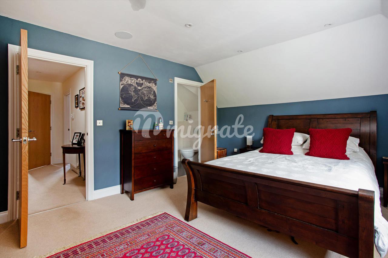 Лестница ведет из коридора на верхние этажи. Гостиная с дровяной печью находится в задней части первого этажа с видом на сад. На этом этаже есть две спальни, одна со встроенными шкафами. В распоряжении гостей семейная ванная комната с ванной и отдельной душевой кабиной.Просторная главная спальня находится на втором этаже и в задней части дома. Дополнительным преимуществом является современная ванная комната с душем. Впереди находится четвертая спальня с собственной душевой комнатой и еще одна пятая спальня / кабинет.