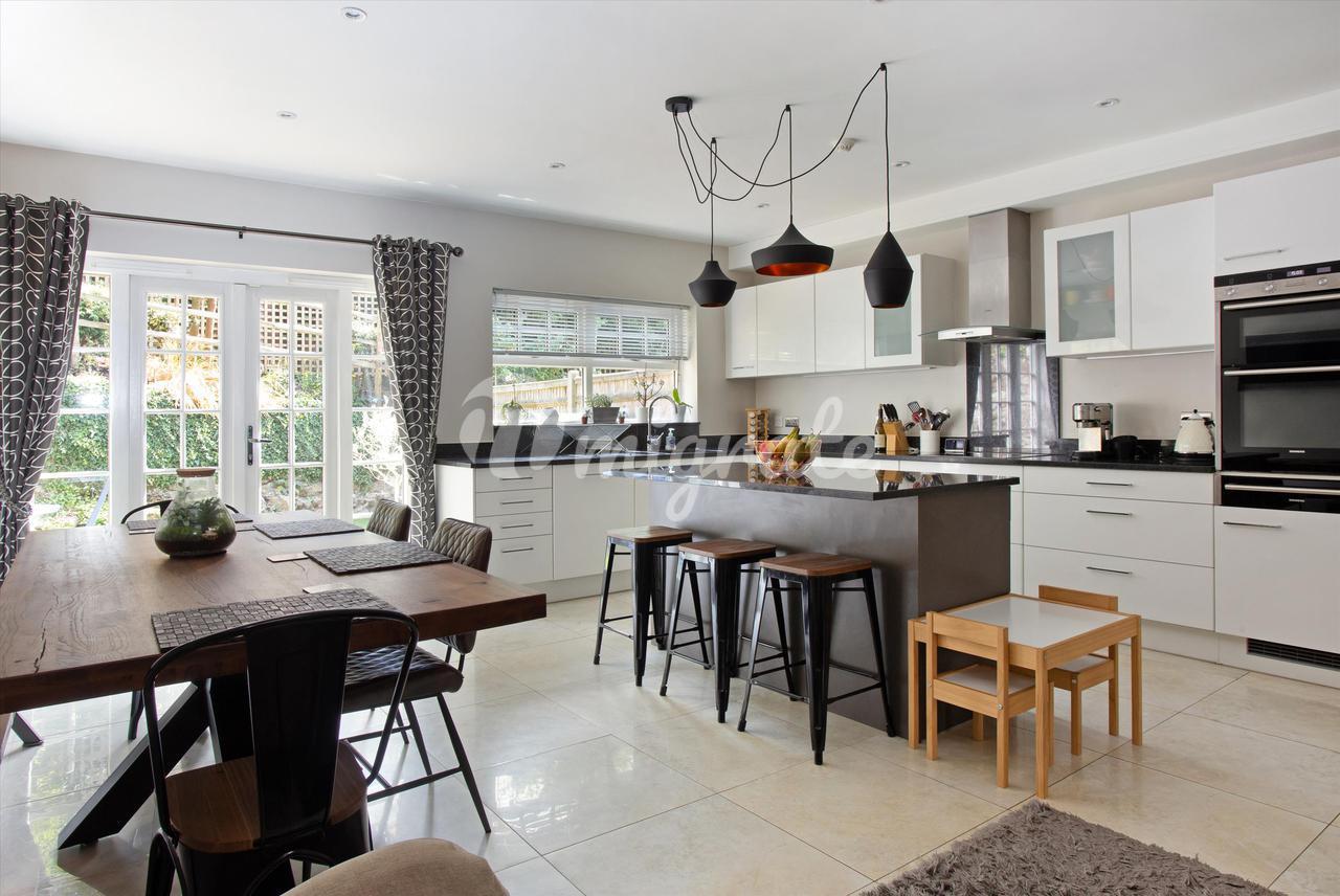 Имущество находится в безупречном состоянии на всем протяжении с просторными помещениями, расположенными на трех этажах, садом на юго-восточной стороне, встроенным гаражом с парковкой на подъездной дорожке перед домом, впечатляющей кухней / столовой с французскими дверями, ведущими в сад, просторной гостиной на втором этаже и четырьмя спальнями и еще один кабинет/пятая спальня. Просторная и уютная прихожая на первом этаже ведет к впечатляющей кухне / столовой в задней части дома, гардеробной с туалетом, встроенному гаражу и удобному шкафу для хранения вещей под лестницей. Просторная и хорошо спланированная кухня-столовая является центром этого семейного дома, простирающегося через заднюю часть дома с французскими дверями, выходящими в сад на заднем дворе, оснащена широким ассортиментом современных настенных и базовых блоков с гранитными рабочими поверхностями, островом с барной стойкой с одной стороны и рядом интегрированных приборов Siemens. Сзади и сбоку есть окна, которые наполняют эту комнату естественным светом, достаточно места для обеденного стола и стула, а плиточный пол продолжается из прихожей.