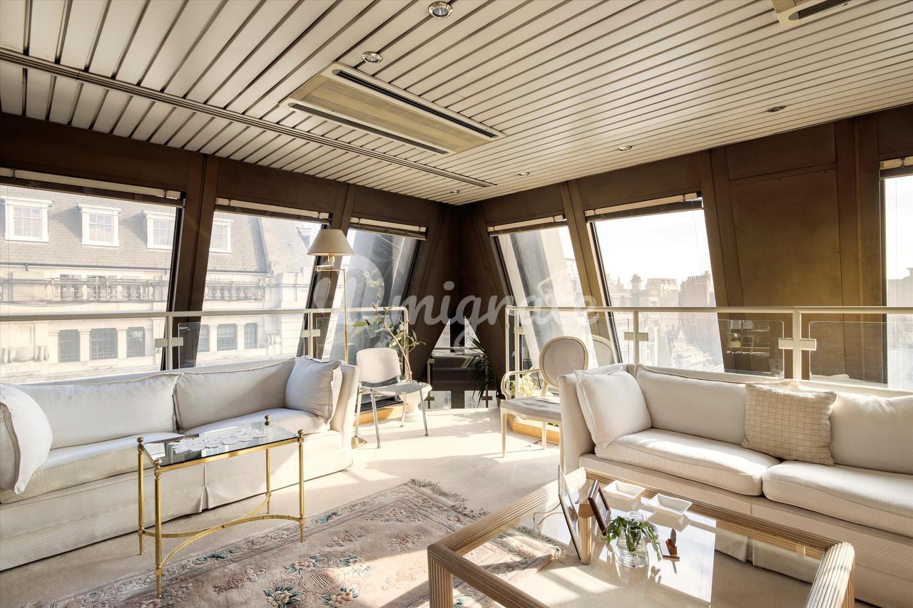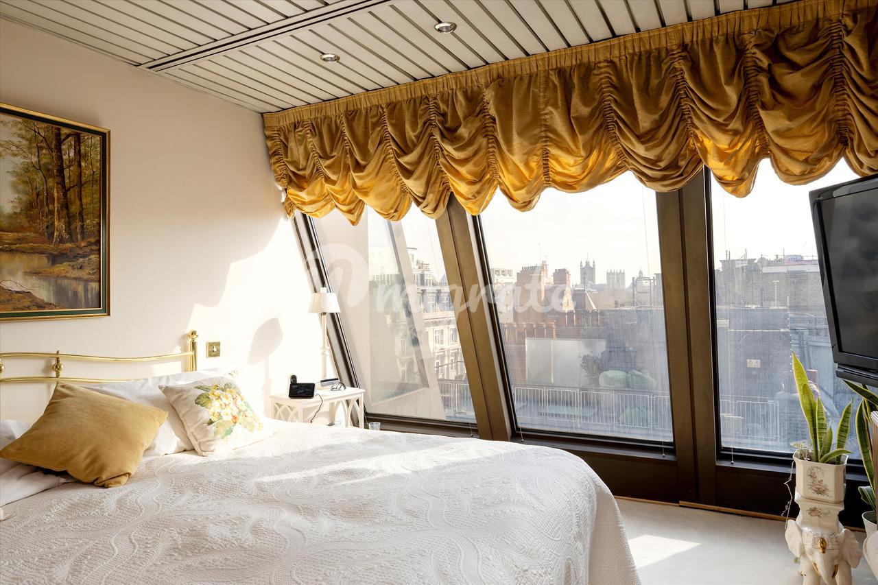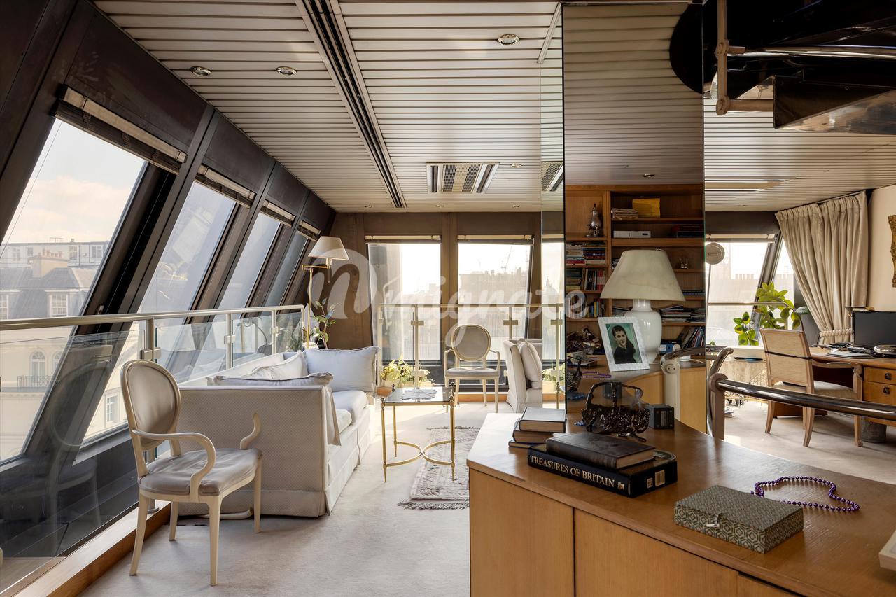 Он имеет прямой доступ на лифте к пятому этажу, где вы можете найти солидную приемную / столовую с эркером в виде башни с видом на улицу Сент-Джеймс. Вся собственность залита естественным светом от значительного наклонного пола до световых люков на потолке, окружающих здание. Квартира также выгоды от кондиционирования воздуха во всем. Главная спальня, расположенная на шестом этаже, просторная, с вместительной встроенной кладовой и ванной комнатой с ванной в стиле джакузи. На пятом этаже расположены две спальни с двуспальными кроватями и спальня для персонала/гостя, в одной из которых есть собственная душевая. С террасы на крыше открывается захватывающий вид на Сент-Джеймс и Вестминстер, а мини-кухня идеально подходит для проведения ужинов на свежем воздухе.