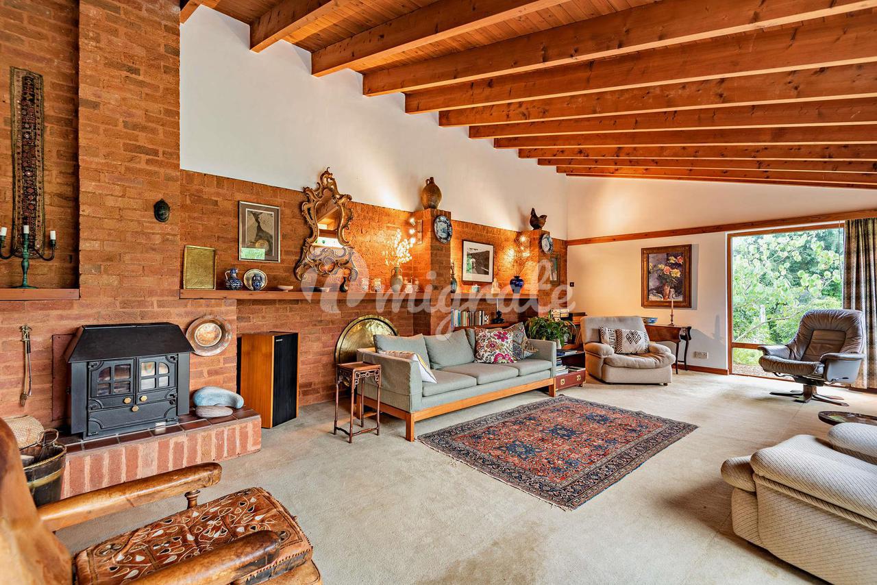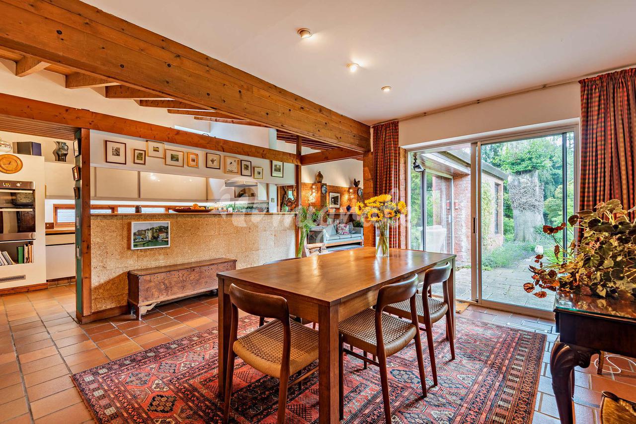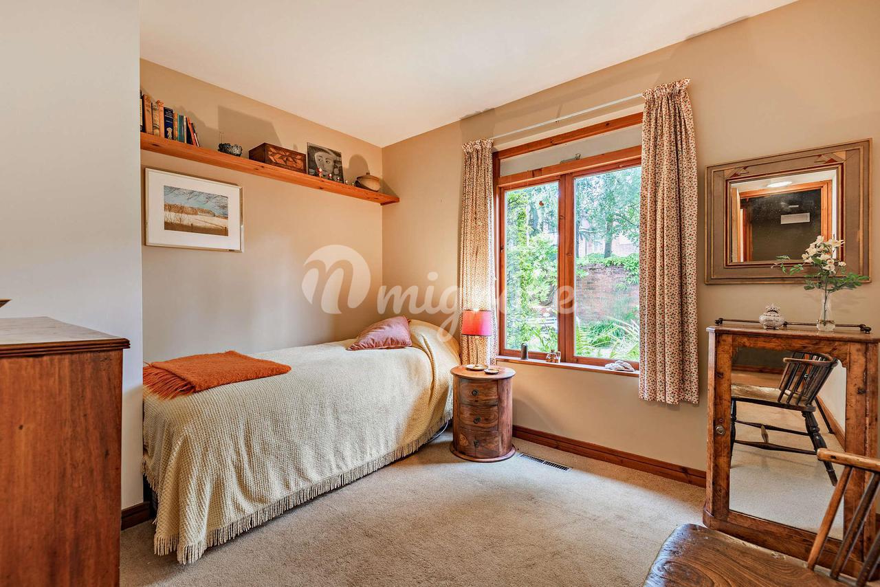 Дом расположен в стороне от улицы Святой Марии, в восхитительном уединенном месте с гаражом и уединенным огороженным садом во внутреннем дворе. В палисаднике есть пруд и мост, а удобная крытая дорожка ведет к парадной входной двери. Входная дверь открывается в прихожую, которая создает ощущение приглашения в сказочную, светлую и уютную кухню/столовую/гостиную открытой планировки. С одной стороны от вестибюля находится домашний офис (который можно использовать как спальню), а сразу за дверью удобный гостевой туалет. Оригинальная каменная плитка на полу создает прекрасный контраст и теплоту пространству, а открытая местная кирпичная кладка ручной работы придает глубину. Кухня была спроектирована так, чтобы быть объединенной с жилыми помещениями. Приподнятая стойка обеспечивает определенную степень разделения, в то время как высокие шкафы позволяют боковому обзору проходить как из гостиной, так и из столовой. Сделанная на заказ кухня со столешницами из терраццо и массива вяза; оригинальные чертежи доступны для модернизации. Отдельное подсобное помещение ведет от кухни к проходу, который дает прямой доступ к саду и гаражу. Большая гостиная вытекает из этого пространства, а уклон крыши из окрашенной древесины наиболее заметен, что создает прекрасное ощущение движения в дизайне. Ощущение света и потока дополнительно подчеркнуты раздвижными дверями патио во всю высоту, выходящими на красивый сад, и двумя дополнительными окнами во всю высоту, из которых также открывается невероятный вид. Кирпичная кладка перенесена в приподнятый очаг с дровяной печью. Вся эта стена представляет собой открытую кирпичную кладку высотой в три четверти, обеспечивающую глубину и характер. Прекрасная столовая имеет обычный плоский потолок из гипса, но из нее открывается вид на парящую крышу над кухней и гостиной, предлагая смену темпа. Дверь ведет в коридор спальни, откуда можно попасть во все четыре спальни с двуспальными кроватями. В главной спальне есть собственная душевая и прямой выход на великолепный внутренний дворик, выходящий на южную сторону, и в задний сад. Эта комната просто идиллия. Вторая и третья спальни выходят на передний двор с видом на рыбный пруд, а четвертая спальня разделяет вид на задний сад. Семейная ванная комната находится в конце коридора и также выходит во двор. В доме много места для хранения вещей, включая просторный чердак и два бельевых шкафа. Этот красивый дом на первом этаже создает потрясающее ощущение характера и потока. Во всем доме чувствуется теплота и дружелюбие. С видом на сады и внутренний двор из любой точки дома вы чувствуете себя в объятиях природы. Дом окружен двумя красивыми садами со взрослыми деревьями, кустарниками и обширными газонами. Красивый дуб и два бука создают прекрасную обстановку для дома и обрамляют вид из жилых помещений. Внутренний двор, выходящий на южную сторону, идеально подходит для трапезы на свежем воздухе. Кроме того, дальше по саду находится летний домик, выходящий на запад, который идеально подходит для вечерних напитков. Имеется много места для хранения в саду, расположенное рядом с большим огородом и теплицей в нижней части сада.
