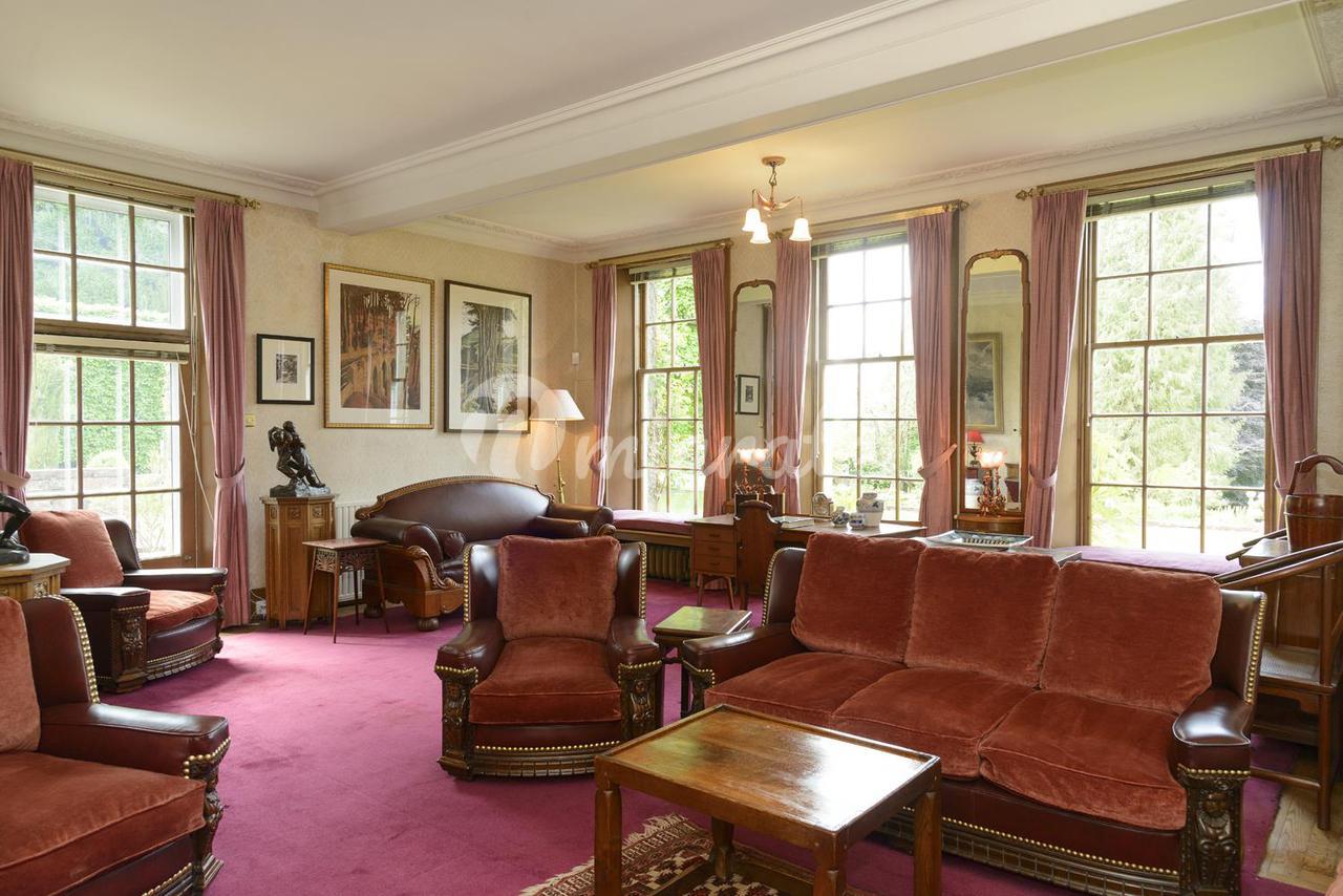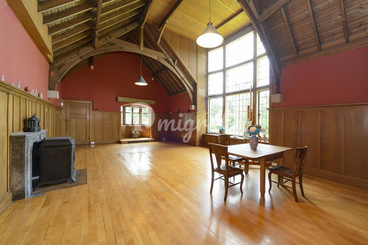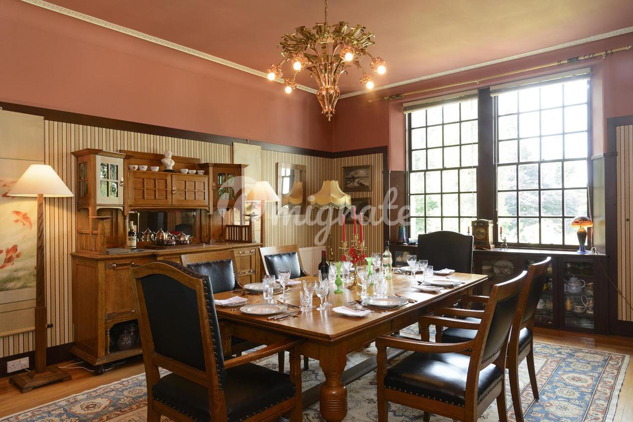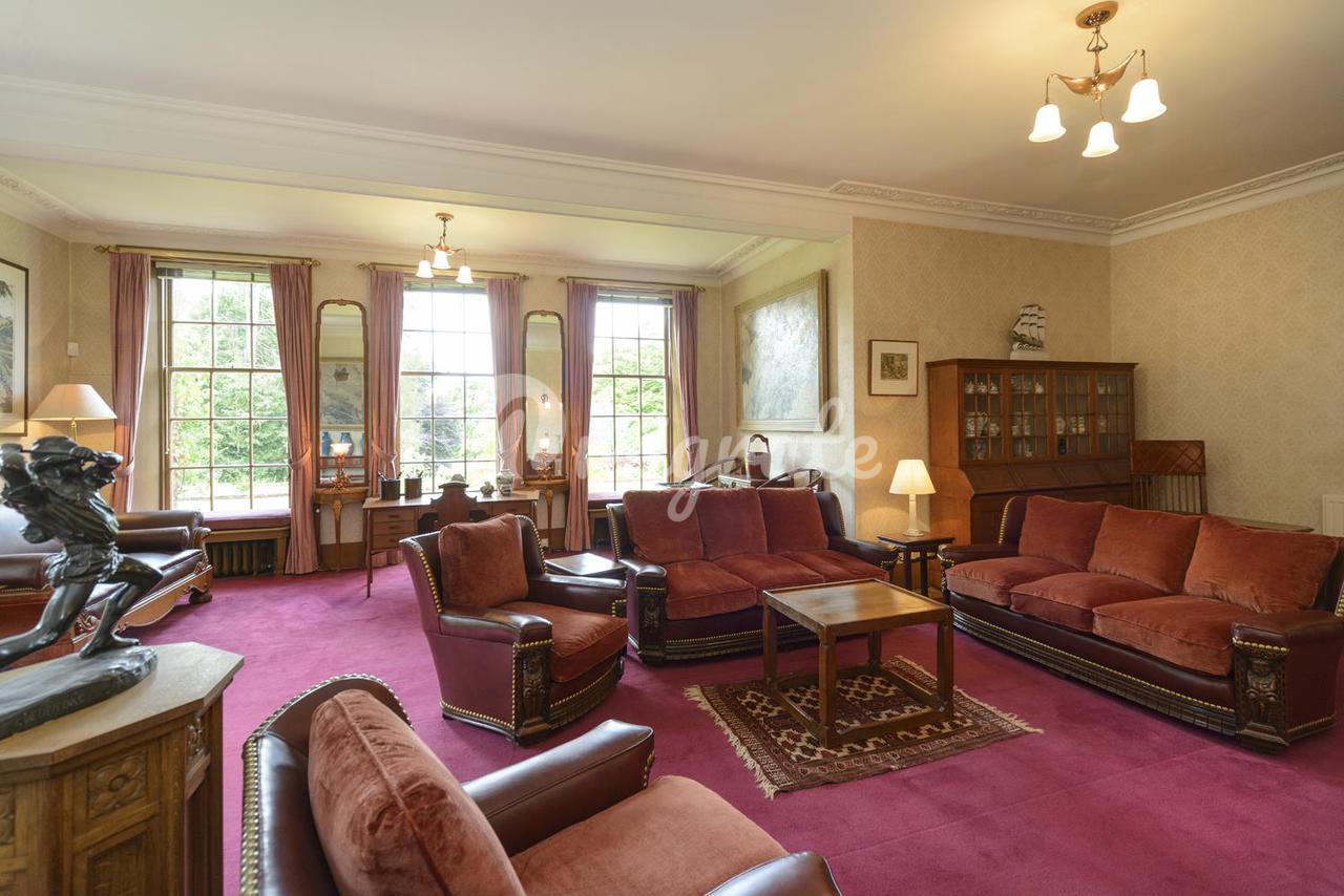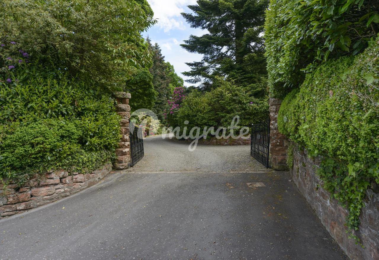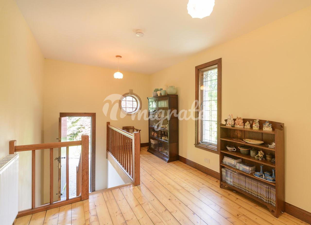 Лот 1 - Дом и сады Дан Игле (около 5,69 акра) Dun Eaglais — это внушительный, но очень управляемый исторический дом, расположенный среди выдающихся пейзажей к западу от Стирлинга, всего в нескольких метрах от центра очаровательной деревни Киппен. Дом искусств и ремесел, внесенный в список А, был модернизирован нынешними владельцами и, тем не менее, сохранил все свое очарование того периода. Аркадная лоджия с ее «благословением» и финиковыми камнями обрамляет свинцовые окна и витражи. Дубовая входная дверь ведет во внешний зал частично круглой формы. Прямо напротив находится обшитый панелями вестибюль с кафельным полом, оригинальным умывальником, астрагаловым окном и отдельной гардеробной с туалетом; а частично застекленная дверь ведет во впечатляющую прихожую в самом сердце дома с оригинальным дубовым полом, многотопливной печью и изразцовым каменным камином. Отсюда оригинальные филенчатые двери ведут прямо в главные приемные комнаты, каждая из которых имеет свой оригинальный дубовый пол: Библиотеку, Гостиную и Столовую, а также деревянную точеную лестницу, ведущую на второй этаж. Библиотека с тремя большими окнами внутри фасада барабанной ротонды обладает многими прекрасными оригинальными чертами, в том числе в одной части встроенные изогнутые книжные полки, два подоконника и богато украшенный куполообразный потолок из гипса, все они отделены от другой части библиотеки декоративная потолочная арка, ведущая к прекрасной зоне отдыха перед камином, и еще одно место у окна в угловой башне. Внутренняя дверь ведет из библиотеки прямо в гостиную с действующим камином, французской дверью и оригинальными астрагаловыми окнами с видом на теннисную лужайку и павильон. Возвращаясь прямо в вестибюль, соседняя дверь ведет в большую квадратную столовую с оригинальным каменным камином, большими астрагаловыми окнами и внутренней дверью в мастерскую художника. В студии сразу же впечатление ошеломляющее, так как огромные каменные колонны, освинцованные окна, арочные потолочные балки, панели и деревянный пол соперничают за внимание еще до того, как английское эркерное окно над приподнятым помостом бросается в глаза. На одном оконном стекле есть автограф Кэмерона, датированный 1906 годом, а ниже нацарапаны автографы других выдающихся посетителей. Большая металлическая печь, вентилируемая через оригинальный мраморный камин в стиле рококо, позволяет использовать ее круглый год для различных целей. В дальнем конце студии еще одна внутренняя дверь ведет в очаровательный коридор с круглым окном и ведет вниз к входу художника и типографии Д. Я. Кэмерона. Возвращаясь в столовую, вторая дверь ведет прямо в кухонный коридор, а из главного коридора можно попасть в гардероб и туалет.
