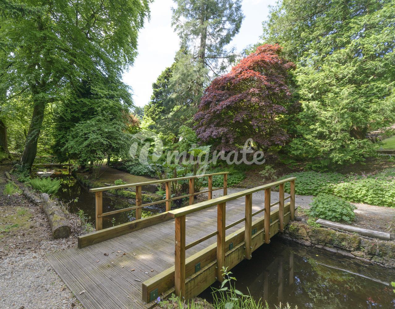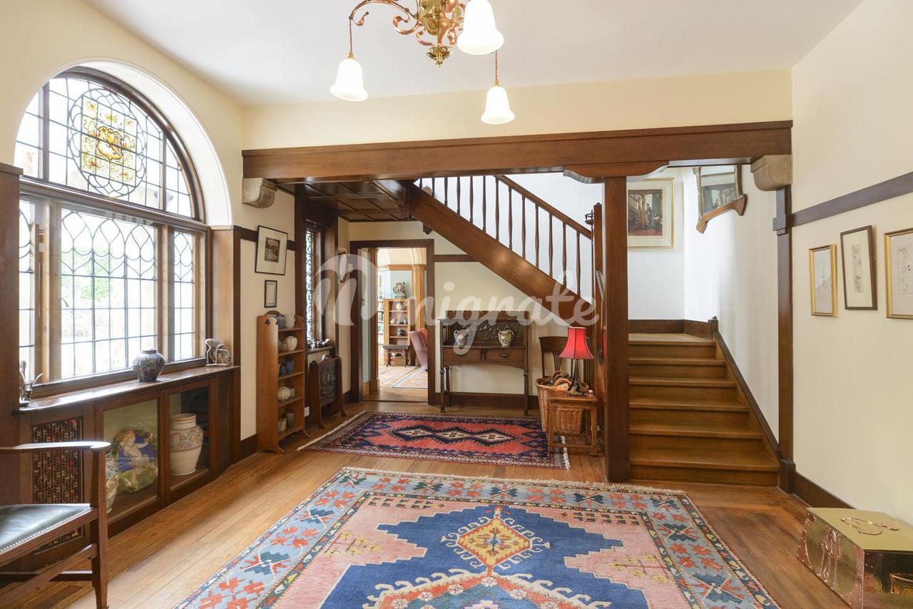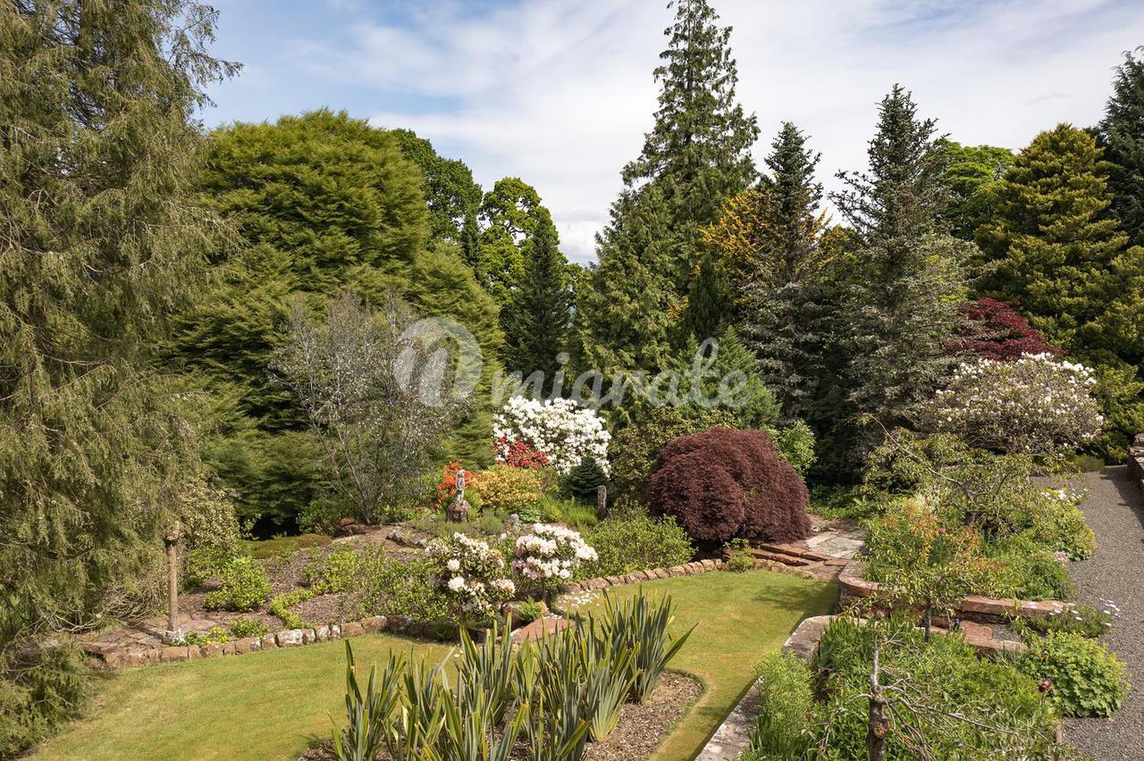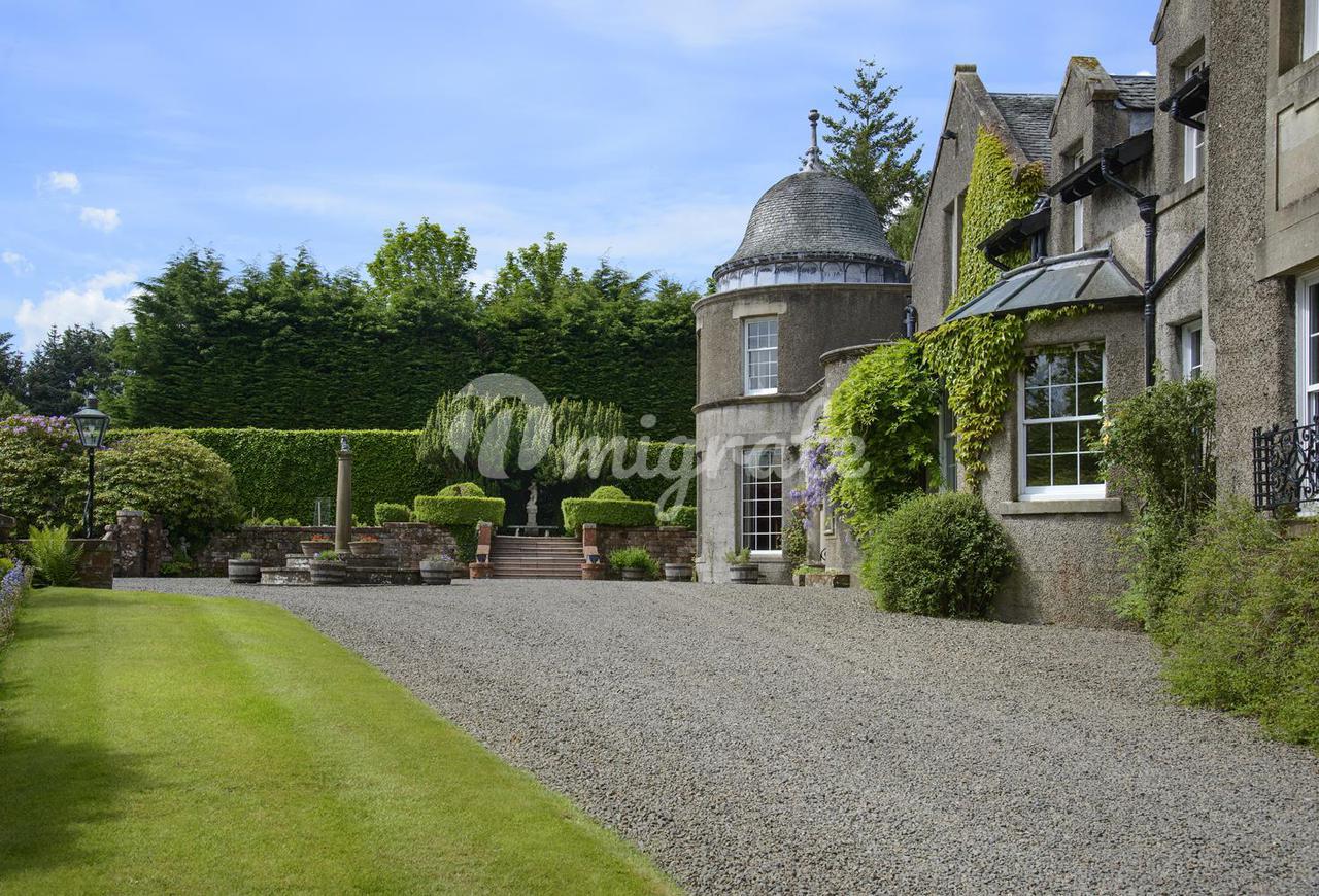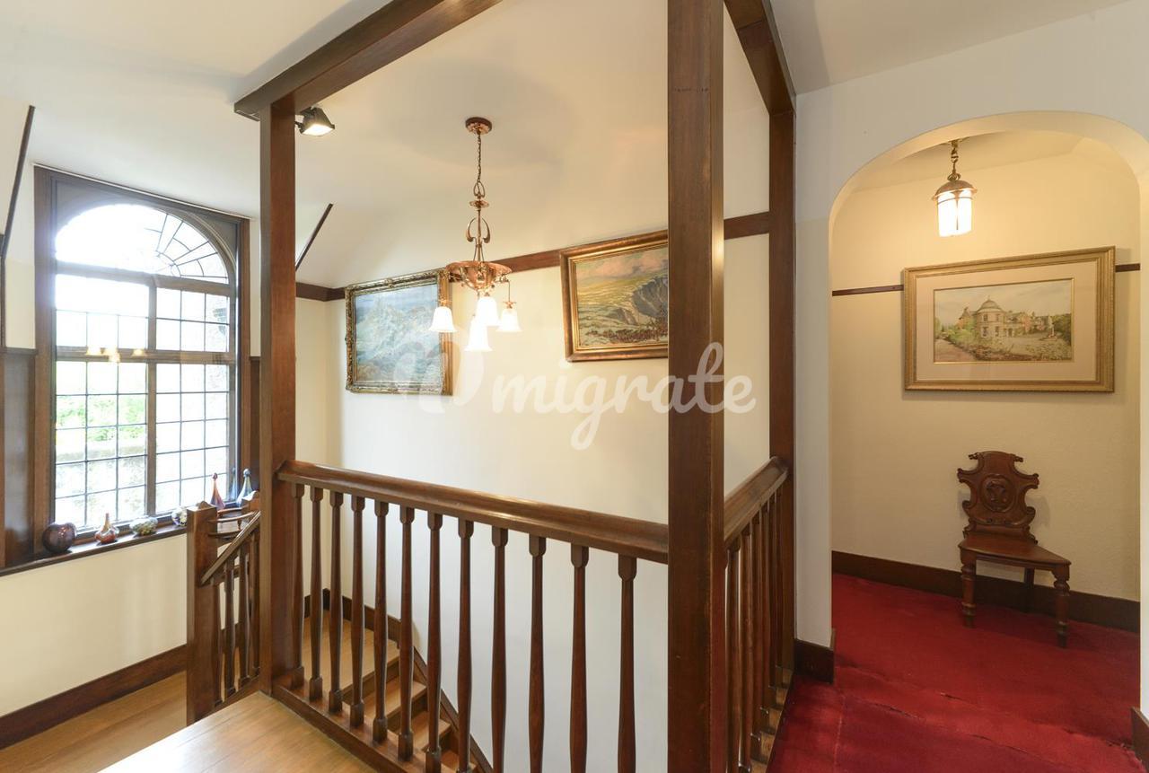Лот 1 - Дом и сады Дан Игле (около 5,69 акра) Dun Eaglais — это внушительный, но очень управляемый исторический дом, расположенный среди выдающихся пейзажей к западу от Стирлинга, всего в нескольких метрах от центра очаровательной деревни Киппен. Дом искусств и ремесел, внесенный в список А, был модернизирован нынешними владельцами и, тем не менее, сохранил все свое очарование того периода. Аркадная лоджия с ее «благословением» и финиковыми камнями обрамляет свинцовые окна и витражи. Дубовая входная дверь ведет во внешний зал частично круглой формы. Прямо напротив находится обшитый панелями вестибюль с кафельным полом, оригинальным умывальником, астрагаловым окном и отдельной гардеробной с туалетом; а частично застекленная дверь ведет во впечатляющую прихожую в самом сердце дома с оригинальным дубовым полом, многотопливной печью и изразцовым каменным камином. Отсюда оригинальные филенчатые двери ведут прямо в главные приемные комнаты, каждая из которых имеет свой оригинальный дубовый пол: Библиотеку, Гостиную и Столовую, а также деревянную точеную лестницу, ведущую на второй этаж. Библиотека с тремя большими окнами внутри фасада барабанной ротонды обладает многими прекрасными оригинальными чертами, в том числе в одной части встроенные изогнутые книжные полки, два подоконника и богато украшенный куполообразный потолок из гипса, все они отделены от другой части библиотеки декоративная потолочная арка, ведущая к прекрасной зоне отдыха перед камином, и еще одно место у окна в угловой башне. Внутренняя дверь ведет из библиотеки прямо в гостиную с действующим камином, французской дверью и оригинальными астрагаловыми окнами с видом на теннисную лужайку и павильон. Возвращаясь прямо в вестибюль, соседняя дверь ведет в большую квадратную столовую с оригинальным каменным камином, большими астрагаловыми окнами и внутренней дверью в мастерскую художника. В студии сразу же впечатление ошеломляющее, так как огромные каменные колонны, освинцованные окна, арочные потолочные балки, панели и деревянный пол соперничают за внимание еще до того, как английское эркерное окно над приподнятым помостом бросается в глаза. На одном оконном стекле есть автограф Кэмерона, датированный 1906 годом, а ниже нацарапаны автографы других выдающихся посетителей. Большая металлическая печь, вентилируемая через оригинальный мраморный камин в стиле рококо, позволяет использовать ее круглый год для различных целей. В дальнем конце студии еще одна внутренняя дверь ведет в очаровательный коридор с круглым окном и ведет вниз к входу художника и типографии Д. Я. Кэмерона. Возвращаясь в столовую, вторая дверь ведет прямо в кухонный коридор, а из главного коридора можно попасть в гардероб и туалет.