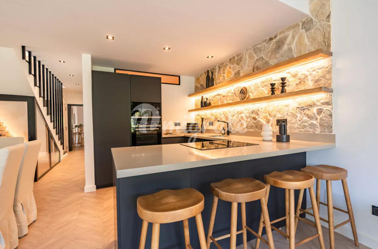 Полностью отремонтированный и спроектированный одной из ведущих студий дизайна интерьеров Марбельи, этот невероятный таунхаус предлагает нечто совершенно иное на рынке. Во всем доме были использованы высококачественные материалы. Площадь дома составляет около 120 м2, а терраса - 30 м2. Первый этаж имеет открытую планировку с красивой кухней, оборудованной высококачественной бытовой техникой, столешницами и впечатляющей каменной стеной. Столовая рассчитана на 6 персон, а также имеется собственный "винный погреб", изготовленный на заказ. Гостиная безупречно меблирована и располагает впечатляющим каменным камином, придающим помещению домашнюю атмосферу. Гостиная дополнена выходом на прекрасную террасу, выходящую на южную сторону, оборудованную столом и стульями, и прямым выходом в общий сад.