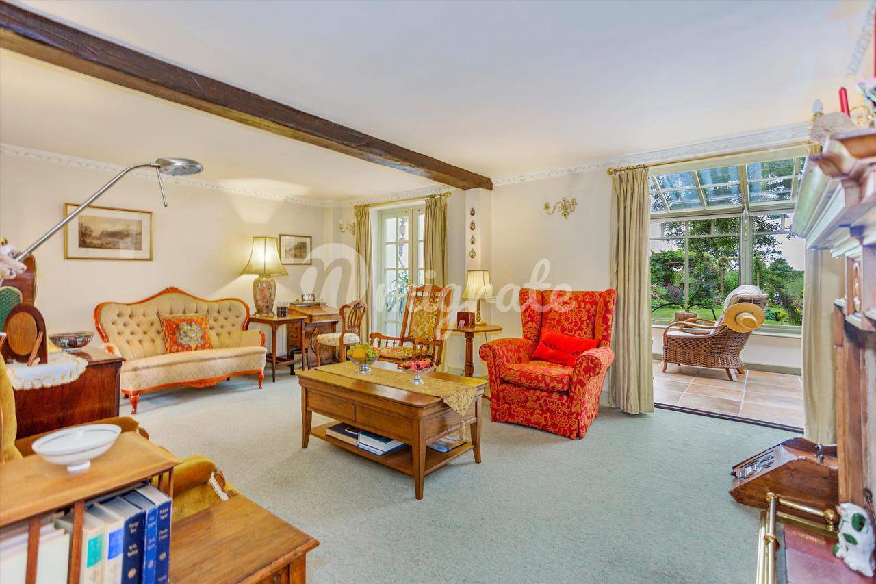 Есть хорошо распределенная гостиная с масляным камином и дверью в консерваторию и кабинет. В гостиной есть камин с дровяным камином, плиточный пол и ставни. Есть четыре спальни, две ванные комнаты и отдельный туалет.