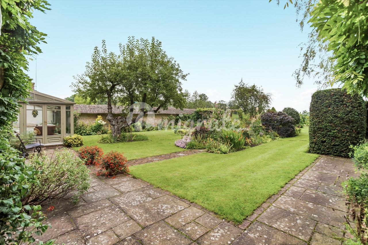Привлекательный сад, выходящий на юго-восток, является главной особенностью дома. Он частично огорожен стеной и в основном покрыт газоном с множеством взрослых деревьев и кустарников.