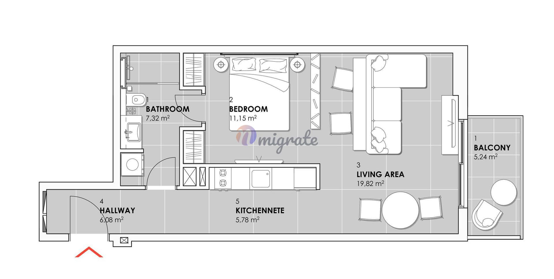 Жилой комплекс включает в себя широкую коллекцию востребованной недвижимости: студии и апартаменты с 1-2 спальнями. Общая жилая площадь резиденций колеблется от 430 до 3003 квадратных футов. Хорошо продуманные и функциональные интерьеры, выполненные в современном минималистском стиле, прекрасно дополняются нейтральной цветовой палитрой, что делает резиденции еще более просторными.