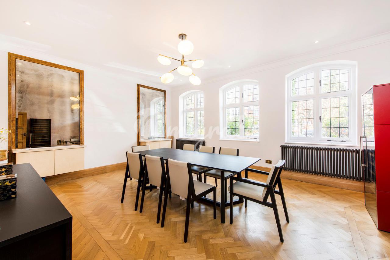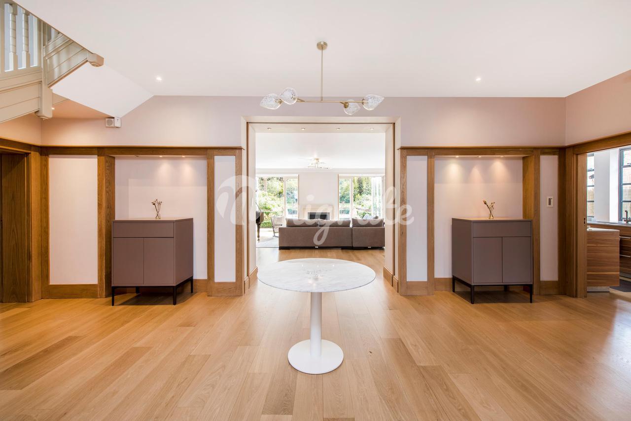 Этот великолепный трехэтажный дом расположен за подъездной дорожкой. Первый этаж состоит из большой прихожей, которая ведет в великолепную гостиную с двумя дверями в сад. Имеется кухня/зал для завтрака со стеклянной крышей и большим островом, а также подсобное помещение со стиральной и сушильной машинами Miele. Полностью оборудованная кухня Bulthaup оснащена двумя посудомоечными машинами, холодильником Sub-Zero и большой морозильной камерой. Кроме того, есть большая столовая, отдельная гостиная, ведущая в фантастический кабинет, который является идеальным домашним офисом, а также туалет внизу и встроенный гараж с дверью гаража с дистанционным управлением. На первом этаже находится большая основная спальня с гардеробной и ванной комнатой, а также три дополнительные спальни с двуспальными кроватями и семейная ванная комната. На втором этаже есть очень просторная комната, в настоящее время оборудованная как игровая, которая также может быть великолепной спальней, а также еще одной спальней с двуспальной кроватью и ванной комнатой.