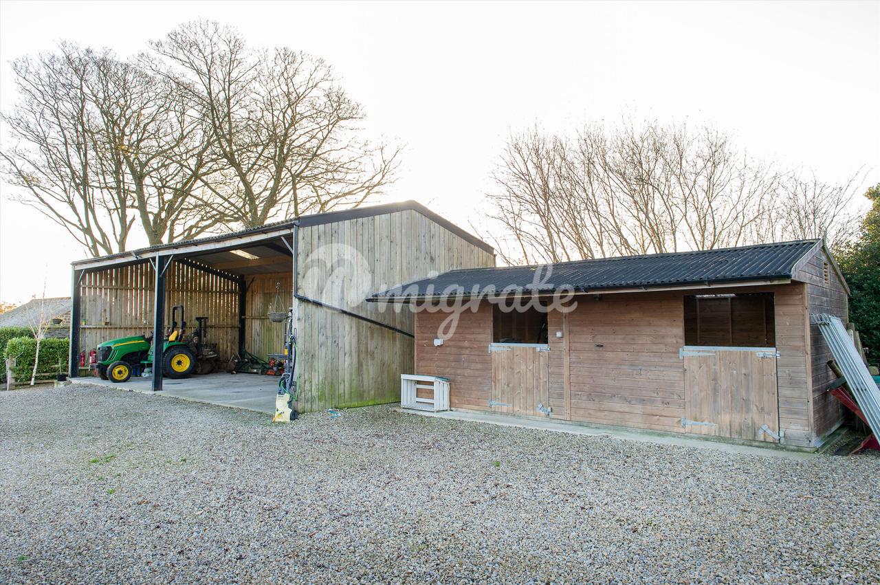 Собственность также может похвастаться рядом хозяйственных построек, в том числе двумя конюшнями, сараем для четырех автомобилей, гаражом на одну машину и дополнительной крытой парковкой.