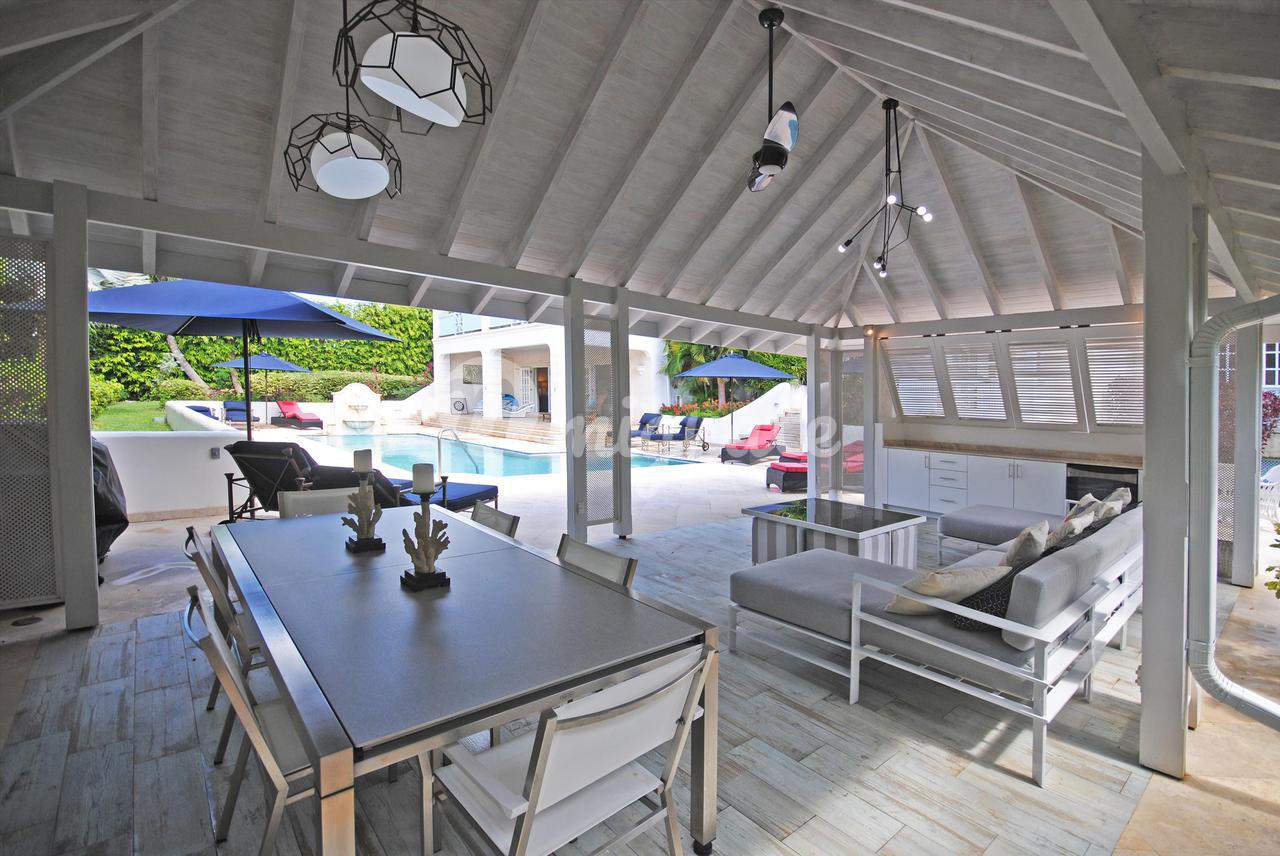Свойство предлагает исключительную конфиденциальность и хороший вид на море с первого этажа. Дизайн дома отлично подходит для семей или больших групп, с тремя спальнями и тремя ванными комнатами в главном доме и отдельным коттеджем с двумя спальнями, двумя ванными комнатами и кухней. Оба объекта выходят на красивую общую просторную террасу у бассейна с беседкой у бассейна и площадкой для барбекю, подходящей для обеда или просто отдыха. Гостиная открытой планировки имеет высокие потолки и французские двери, которые ведут на обеденную террасу на первом этаже и в гостиную с видом на бассейн. Также на этом уровне находятся полностью оборудованная кухня открытой планировки, 5-я спальня, ванная комната и прачечная. На первом этаже находится большая главная спальня и просторная ванная комната и гардеробная, а также еще один гостевой люкс с ванной комнатой. Обе эти спальни выходят на крытую веранду, бассейн и террасу. Этот дом никогда не сдавался в аренду и поддерживается на очень высоком уровне. Все спальни оснащены кондиционерами и встроенными шкафами, а четыре из пяти спален выходят на балкон или крытую веранду.
