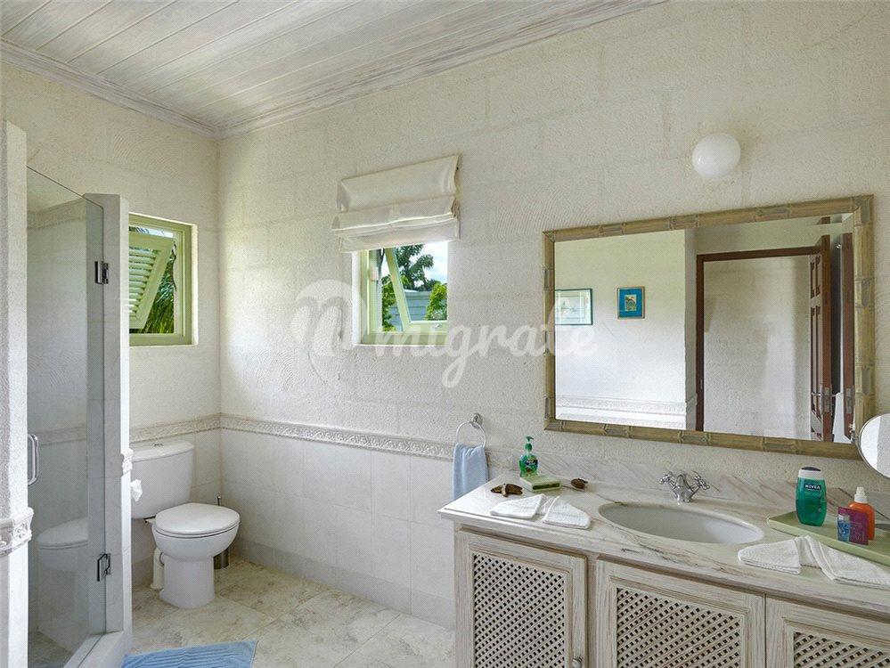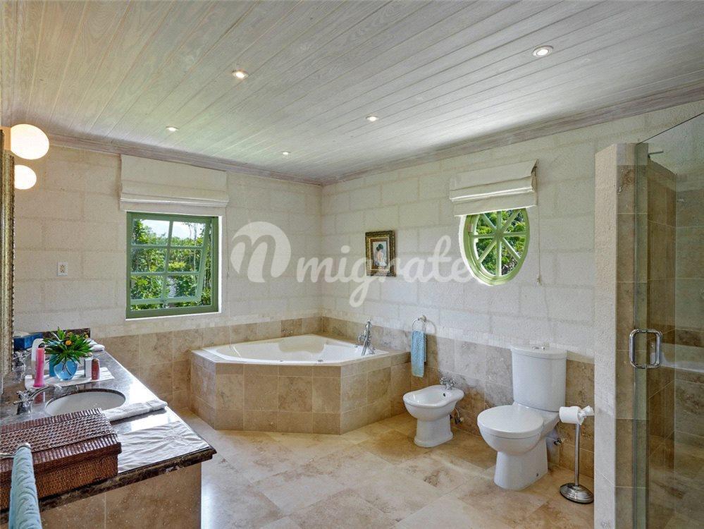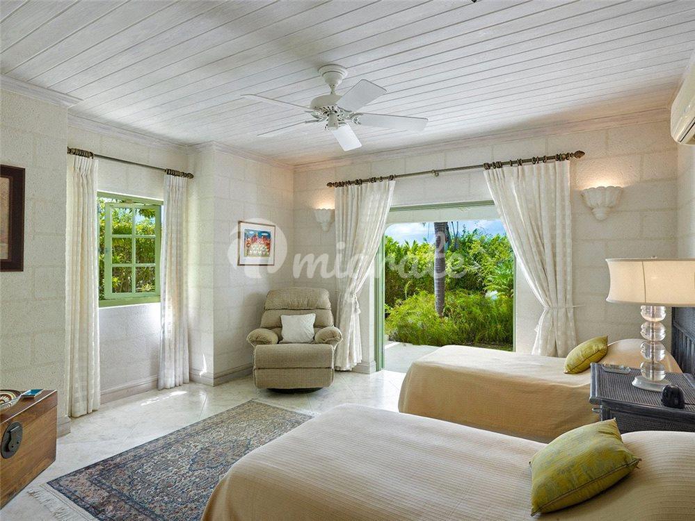 Первый этаж главного дома предлагает гостевой люкс с частной террасой в саду, большие крытые и открытые гостиные и обеденные зоны с французскими дверями, которые открываются на частично крытую террасу с бассейном, а также просторную кухню с бытовой техникой из нержавеющей стали и прачечные помещения. На верхнем уровне есть еще один гостевой люкс с собственной террасой, а в большой главной спальне есть двуспальная кровать с балдахином, кабинет/офис, крытая терраса с видом на Карибское море и качественная ванная комната с двойной раковиной, душем и ванной.