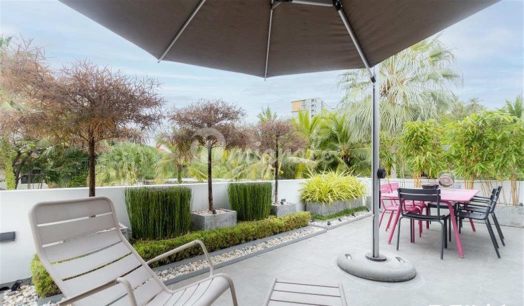 Эти элегантные апартаменты расположены на верхнем этаже высотного здания и состоят из двух просторных спален с ванными комнатами. Существует рабочая комната, которая может быть легко преобразована в третью спальню. В квартире есть гостиная и столовая открытой планировки с окнами во всю стену и дверями, ведущими на террасу. Есть лестница на антресольный уровень, где есть личное рабочее пространство. Белоснежные стены стильных апартаментов и высокие потолки создают чистую и светлую атмосферу. Это идеальное место, чтобы насладиться ароматными вечерами Пхукета, поужинать на свежем воздухе или провести идеальный ленивый день и понежиться в роскоши. Квартира оформлена в тропическом и современном стиле фьюжн и полностью меблирована хорошо подобранной высококачественной мебелью и фурнитурой. В этом доме также есть мягкое нижнее освещение, которое великолепно дополняет белоснежную эстетику.
