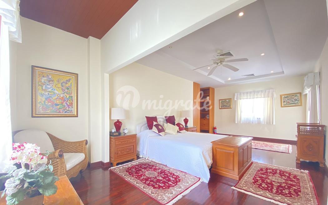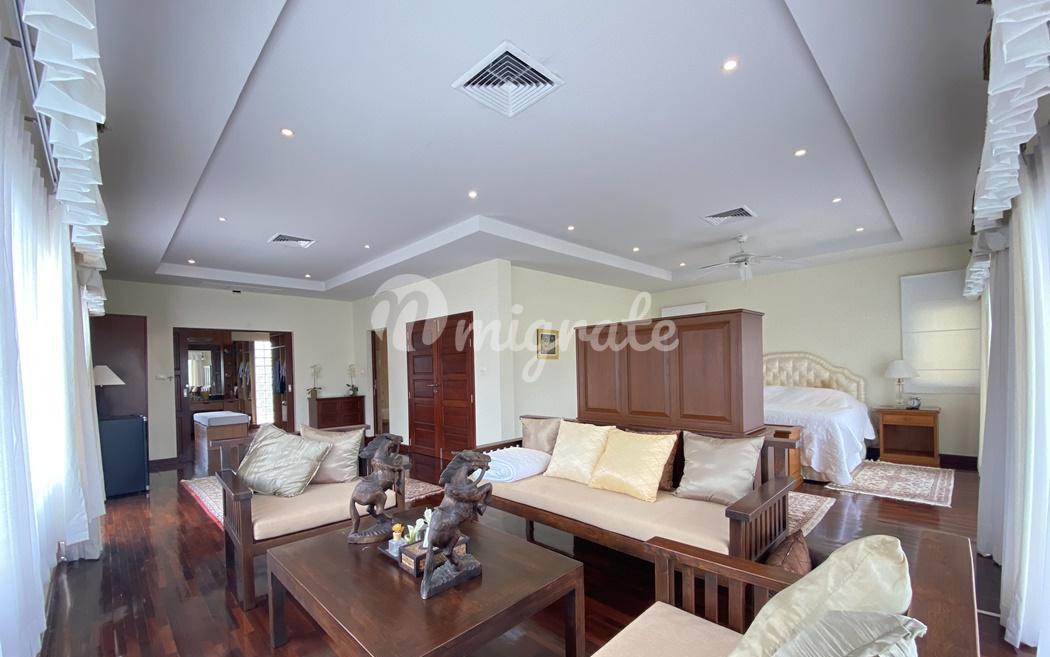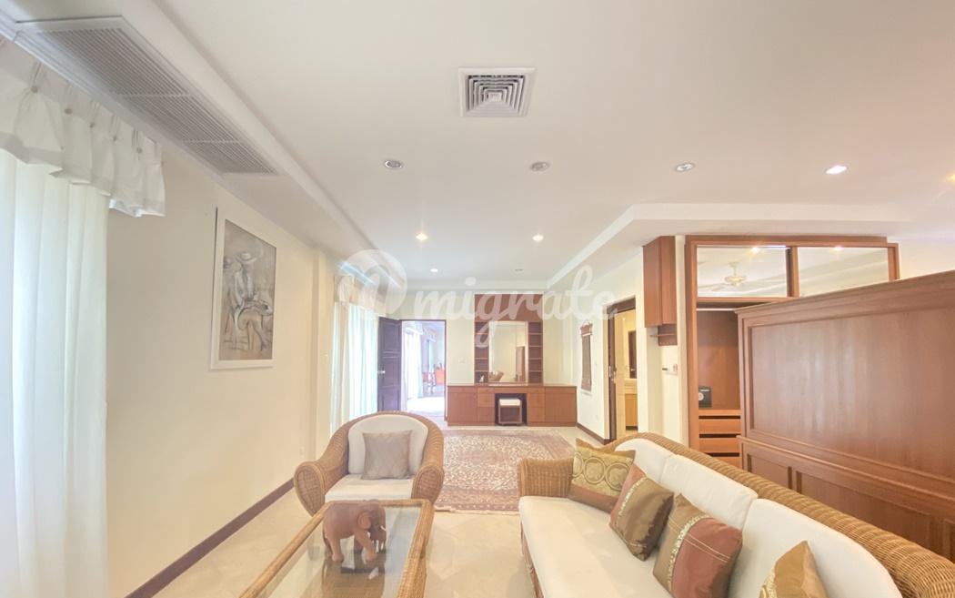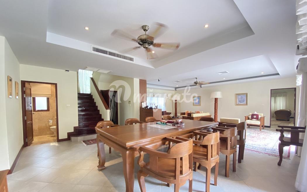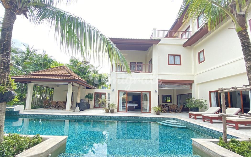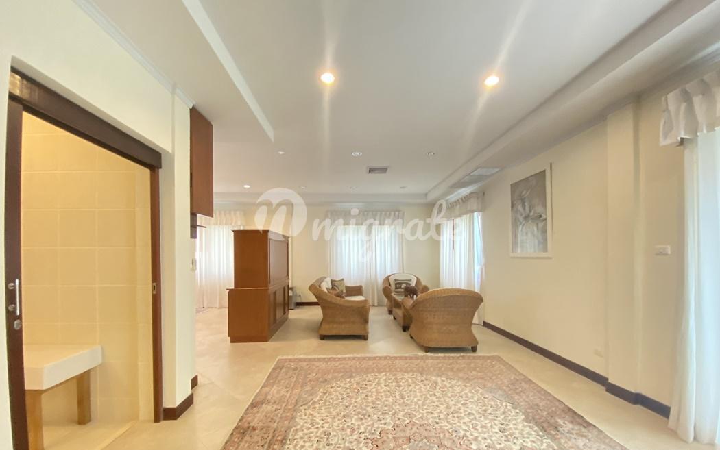 ВИЛЛА Вилла находится в собственности арендодателя. Здание состоит из общей застроенной площади 842,98 кв.м., 3 этажей, 5 спален, 5 ванных комнат, столовой, гостиной, кухни, бассейна, кладовой, прачечной, балконов и гаража. МЕБЕЛЬ Полностью оборудованная * Мебель предлагается за дополнительную плату в размере 2 000 000 THB.