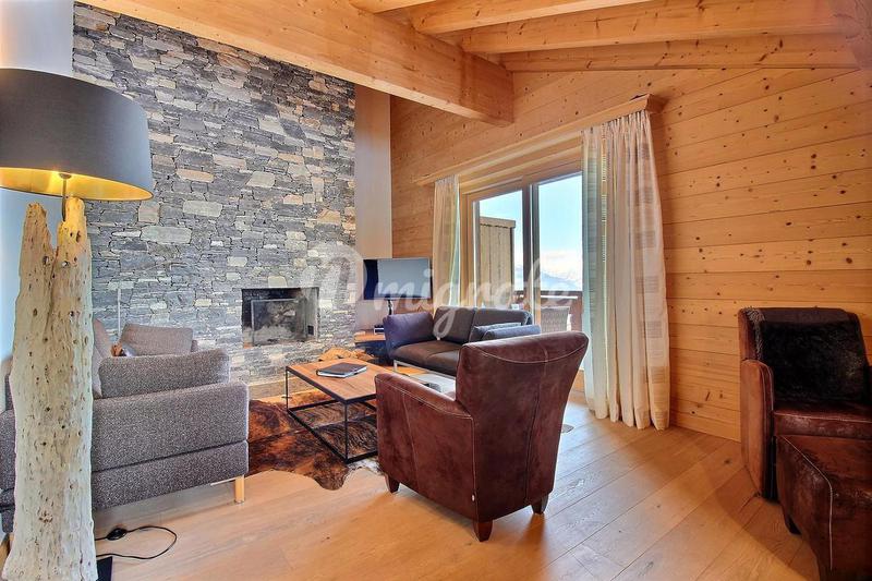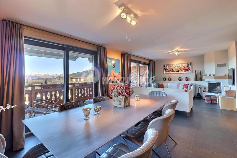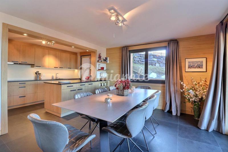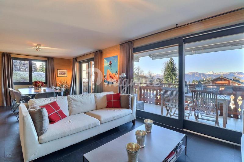 Эти современные апартаменты с видом на горы расположены недалеко от центра Виллара. В квартире есть большая гостиная открытой планировки с камином и большими французскими окнами от пола до потолка, ве