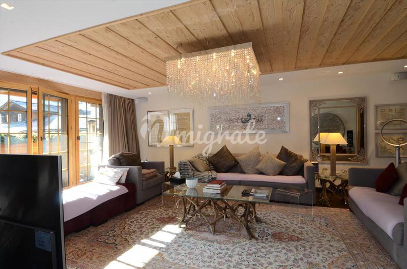 Этот замечательный роскошный пентхаус расположен в отличном месте в центре Гштаада. Квартира состоит из прихожей, библиотеки с кабинетом в углу, большой гостиной с камином и выходом на балкон, кухни с