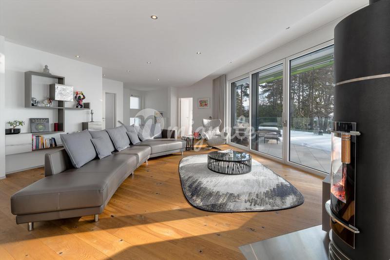 Эта роскошная, очаровательная вилла с 6,5 комнатами и жилой площадью около 300 кв. м расположена на участке площадью 1 891 кв. м с доминирующим панорамным видом на озеро и Альпы. Дом находится в жилом