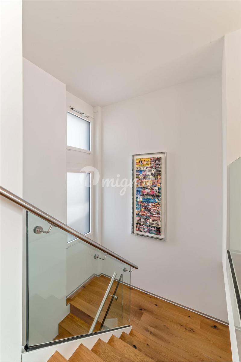 С жилой площадью около 175 кв.м на двух уровнях, дом просторный и залитый естественным светом. На первом этаже находится прихожая с гардеробной, гостевой туалет, спальня/кабинет, большая полностью обо
