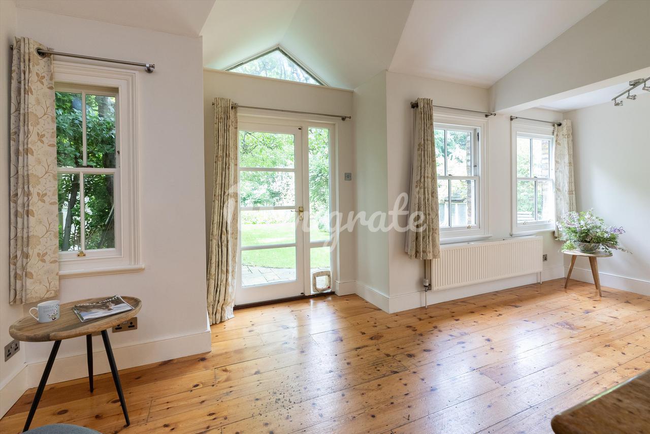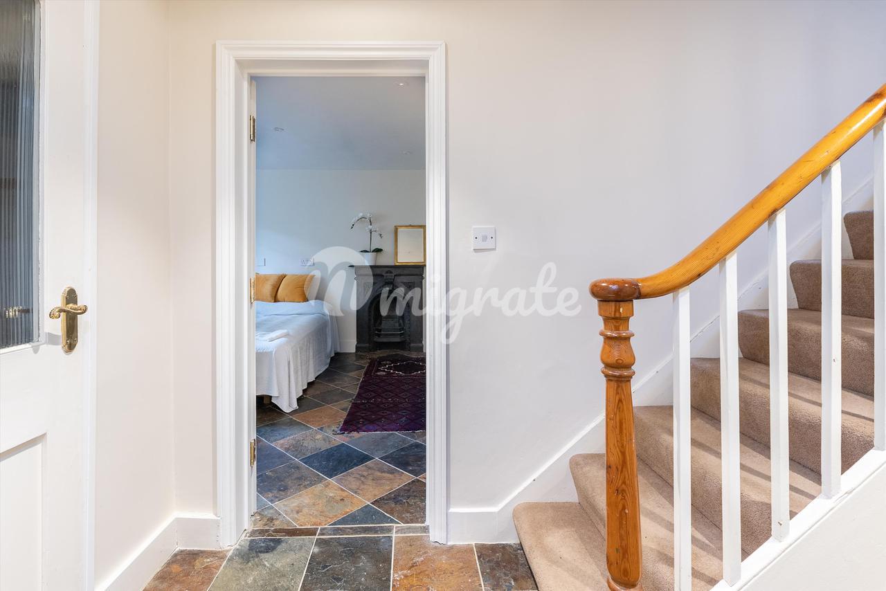 Наверху находятся три светлые и просторные спальни и две ванные комнаты, в том числе просторная главная спальня с двумя аспектами, и есть возможность расшириться на чердак при условии обычного согласия.