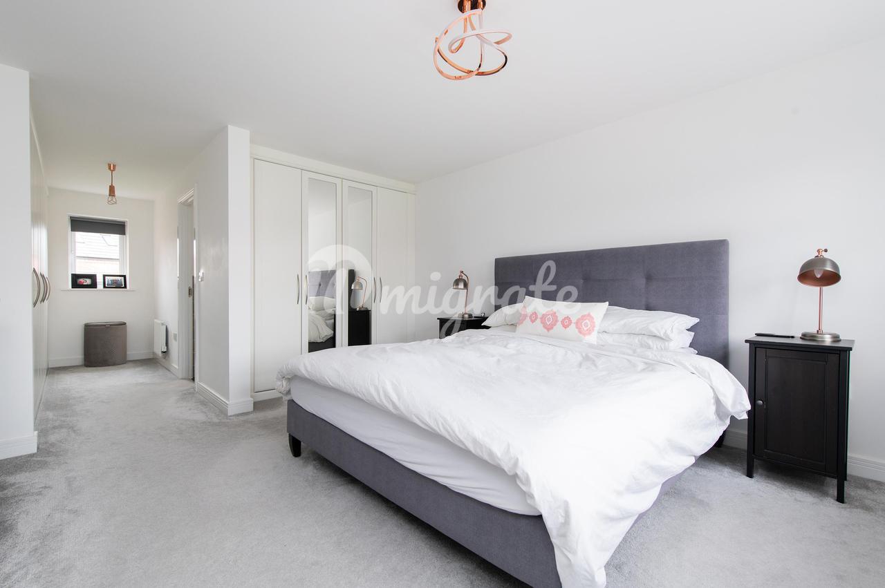 На втором этаже находится потрясающая главная спальня с видом на переднюю часть дома с видом на парковую зону и пятью комплектами встроенных шкафов плюс ванная комната с душем. Во всех ванных комнатах полы Amtico, сантехника ROCA и новые хромированные полотенцесушители, а в главной ванной комнате установлены новые двойные раковины. Есть еще две спальни с двуспальными кроватями и собственными душевыми комнатами, а две другие спальни имеют общую семейную ванную комнату. На лестничной площадке есть место для дополнительного кабинета или библиотеки.