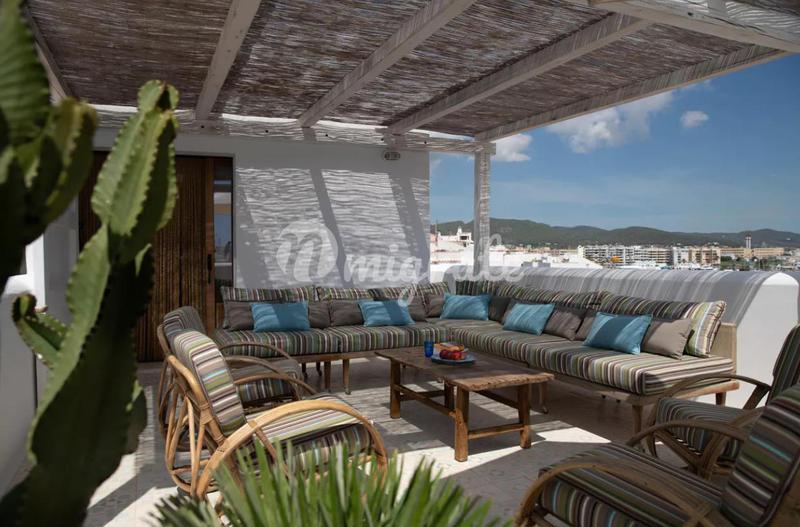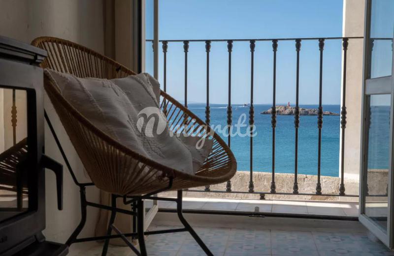 Этот просторный таунхаус расположен в старом городе Ибицы, и из него открывается вид на море, гавань и остров Форментера на заднем плане. С заднего фасада дом выходит окнами на море, а с переднего - н