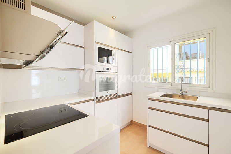 Уютный и полностью обновленный Таунхаус, расположенный на первой линии моря, Новая Золотая Миля, Эстепона. Гостиная объединенная с обеденной зоной, с выходом на террасу и в сад. Полностью оборудованна