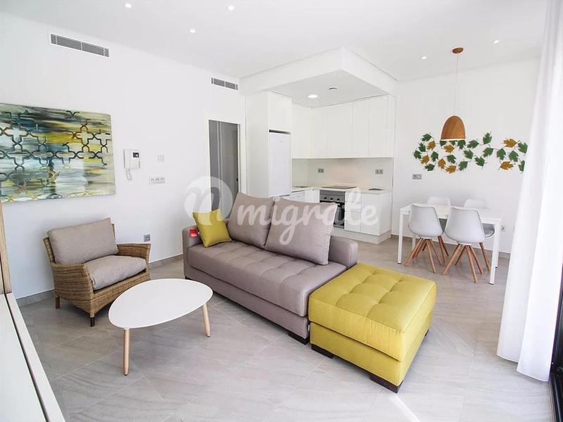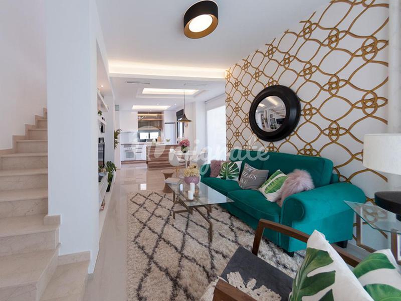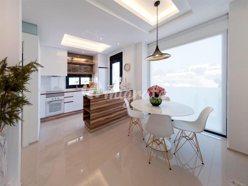Таунхаус в закрытом жилом комплексе в Донья Пепа, Сьюдад-Кесада. Салон, американская кухня, 2 спальни, 2 ванные комнаты с подогревом полов, частный солярий 30 м2, терраса 21 м2 и частный сад 100 м2, п