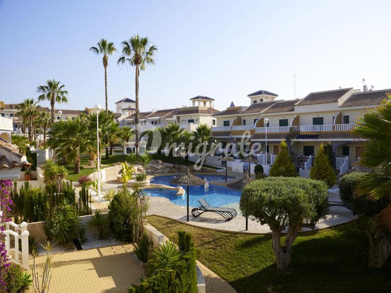 Таунхаус с отдельным входом и небольшим участком земли, расположенный в живописном жилом комплексе с бассейном и красивым садом. Жилой комплекс расположен в городе Ориуэла на побережье Коста Бланка в