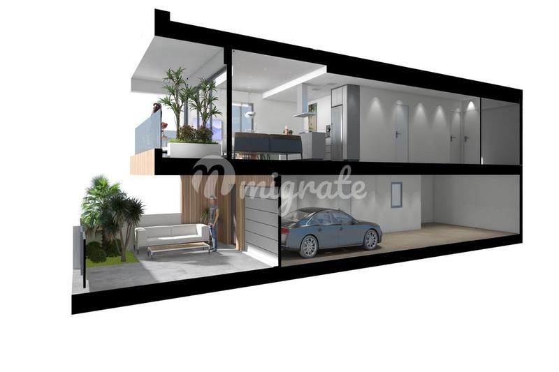 Таунхаус в урбанизации Донья Пепа, Сьюдад-Кесада. Салон с обеденной зоной, кухня, 2 спальни, 2 ванные комнаты, терраса, участок 35 м2. Общая площадь 82 м2. В комплексе есть общий бассейн и парковочное