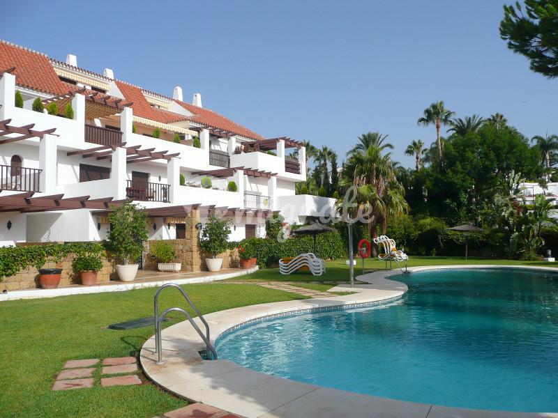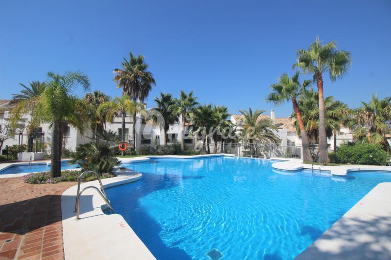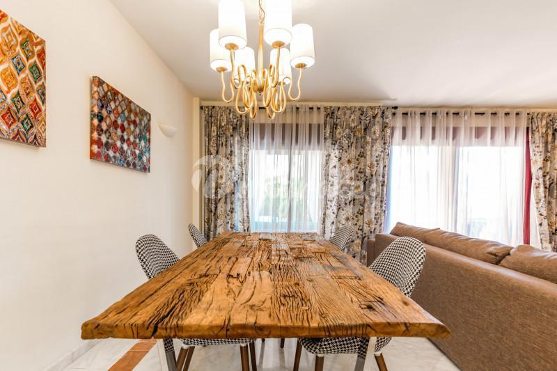 Таунхаус в средиземноморском стиле расположен в закрытом охраняемом комплексе Золотая Миля в элитном районе Марбельи. Отличительными особенностями таунхауса являются высококачественная отделка и элега