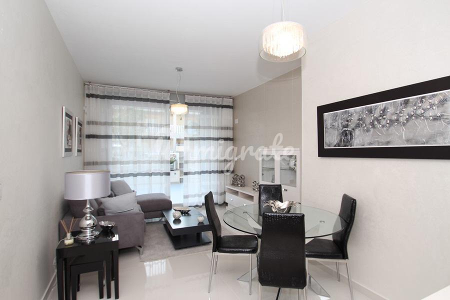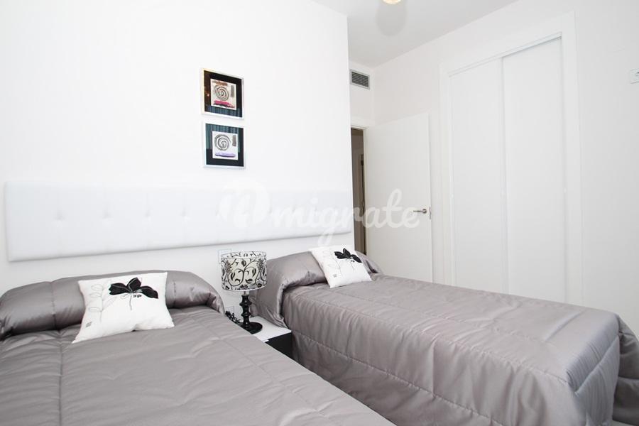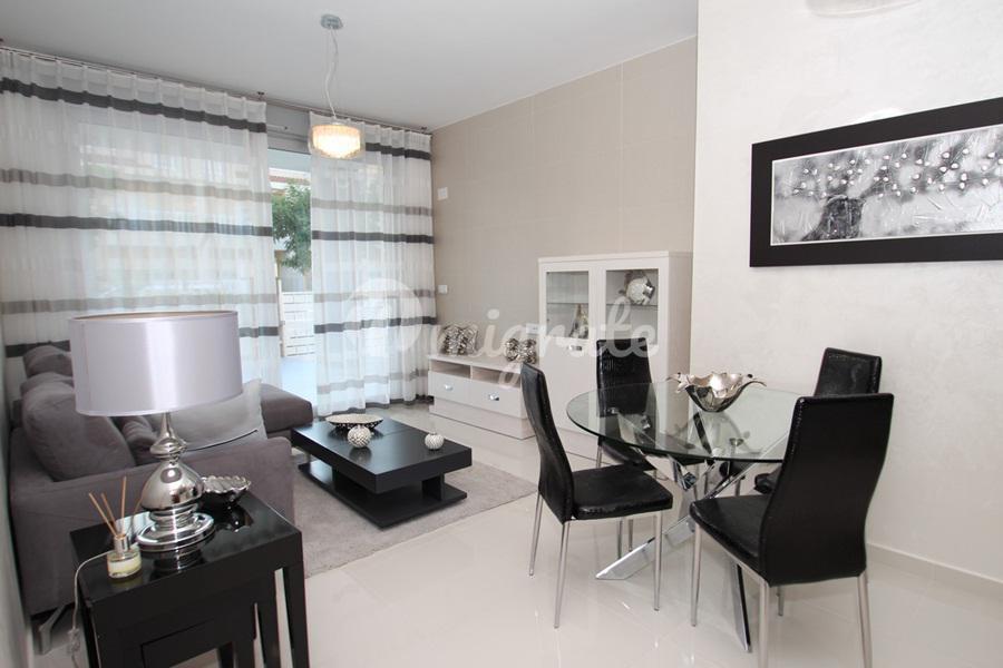 Таунхаус в городке Гуардамар-дель-Сегура. Салон с обеденной зоной, 3 спальни, 2 ванные комнаты, терраса на нижнем этаже и солярий наверху. При строительстве использованы материалы высокого качества. Таунхаус находится в закрытом комплексе, где есть общий бассейн, сауна, спортзал и парковочные места для машин.Гуардамар-дель-Сегура – это очень уютный городок на побережье Коста-Бланка. Он славится своими песчаными пляжами протяженностью в несколько километров. В городе есть все необходимое для проживания: магазины, аптеки, медицинские учреждения, 2 школы, прекрасный парк с детской площадкой, по средам на улицах города действует овощной рынок. В городе есть культурный центр, где можно изучать испанский язык и записаться в различные кружки для детей и взрослых. Много внимания в городке уделяется спорту: есть теннисная школа, крытый бассейн, футбольная команда, шахматный кружок для детей и другие спортивные секции. При впадении реки Сегура в Средиземное море расположен яхт-клуб. В городе есть автобусная станция, откуда можно добраться на автобусе практически в любой уголок Испании.Гордостью города Гуардамар-дель-Сегура можно назвать местный праздник «Мавры и Христиане». Это яркое и запоминающееся зрелище проходит ежегодно в июле и привлекает огромное число как туристов, так и местных жителей.Международный аэропорт Аликанте находится в 30 км.