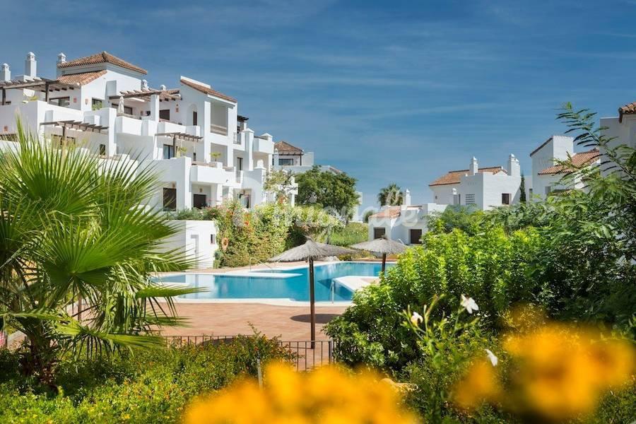 Новый закрытый комплекс, расположенный в районе Алькаидеса, состоит из 30 домов с 3, 4 спальнями и большими террасами, полностью оборудованной кухней, столовой и гостиной. На территории комплекса четыре бассейна, сад, предоставляются услуги консьержа и круглосуточной охраны. Алькаидеса (Alcaidesa) может похвастаться двумя полями для гольфа, которые делают его идеальным выбором для любителей гольфа, восхитительный Club House - идеально подходящее место для проведения всех мероприятий. Здесь вы можете насладиться привилегией жить недалеко от моря (250 м) и отличными полями для гольфа (60 м). Комплекс расположен недалеко от ресторанчиков, супермаркетов и в 15 минутах езды от Сотогранде. Впечатляющий вид на море и очаровательные пейзажи, близость ко всей инфраструктуре делают этот комплекс по истине привлекательным на всем побережье. Джакузи, Ванная комната, Ресепшн 24 часа, Двойные стеклопакеты, Мраморные полы, Встроенные шкафы, Приватная терраса, Кондиционер тепло /холод, Закрытая урбанизация, Охрана 24 часа, Коммунальный бассейн, Вид на море, Вид на сад, Вид на гольф поле, Кухня меблирована, Солярий, Домофон, Подземный паркинг.
