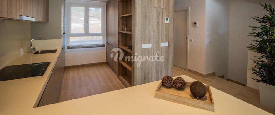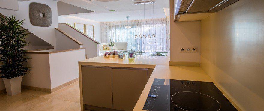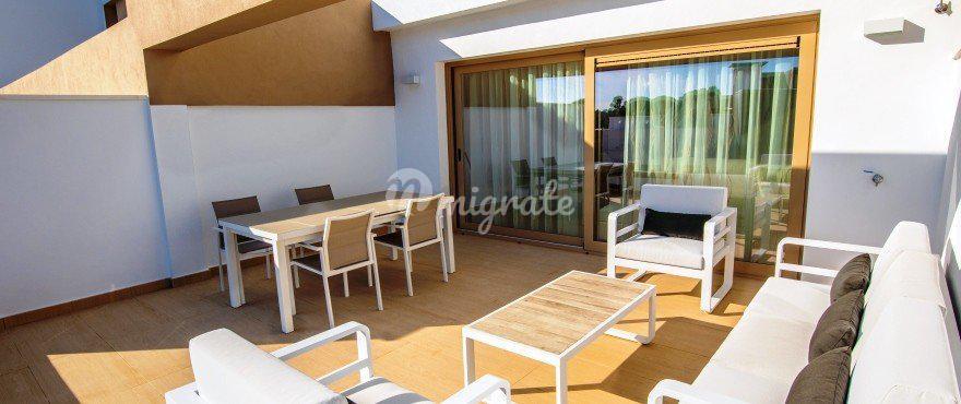 Новый закрытый охраняемый комплекс состоит из 55 просторных таунхаусов, каждый из которых имеет 3 спальни, 2 ванные комнаты и гостевой санузел. С террас открывается замечательный вид на гольф поля и море. Комплекс имеет закрытую охраняемую территорию с садом и общим бассейном, в каждом доме свой гараж(на цокольном этаже). На первом этаже просторная гостиная, кухня, выход на террасу, на втором располагаются спальни и ванные комнаты. А наверху у каждого таунхауса есть терраса-солярий размером в 50 кв.м. с панорамными видами на море. Кухни оборудованы бытовой техникой от лучших производителей, также установлены кондиционеры, ванные комнаты оборудованы сантехникой. Комплекс имеет индекс энергоэффективности, равный B. Эффективная звукоизоляция и термоизоляция. На крышах установлены солнечные панели для экономии электроэнергии. Окончание строительства третьей фазы комплекса состоялось в 2019 году. По условиям оплаты и другим вопросам, свяжитесь с нашими менеджерами.