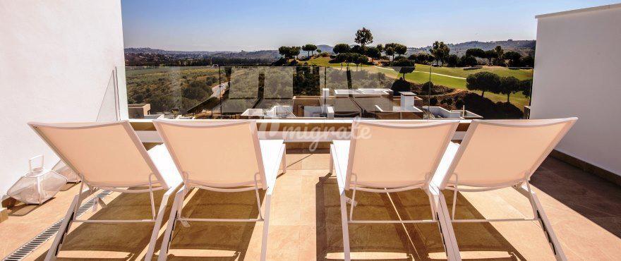 Новый жилой комплекс в La Cala Resort, состоящий из 40 просторных таунхаусов на первой линии гольф-поля с панорамными видами на гольф поля и побережье. Трехэтажные таунхаусы располагаются в закрытой охраняемой урбанизации с бассейном и тропическим садом. Все дома располагают: - Нижним этажом (цокольный этаж), где находится парковка для а/м и дополнительное пространство для использования любого назначения; - Основной этаж, где находится просторная гостиная и полностью оборудованная кухня, 3 просторные спальни, терраса с выходом в сад; - Верхний этаж с большой террасой - солярий, площадью более 50 м2. Все дома построены в соответствии с новыми строительными стандартами качества и имеют сертификат энергоэффективности типа "В". Урбанизация Cala Golf Resort имеет: 3 поля для гольфа с 18 лунками, гидротерапевтический СПА центр, 4-звездочный отель, два ресторана и винный погреб, академию гольфа (La Cala Golf Academy), круглосуточную охрану и большой выбор спортивных объектов (теннисные корты, профессиональное футбольное поле, фитнес-зал, центр досуга, спа-центр), и все это в окружении природы. Всего в нескольких минутах езды вы сможете насладиться очарованием городка Mijas и его историческим центром с узкими улочкам, шопингом в Marbella и Fuengirola, а также окунуться в ночную жизнь La Cala de Mijas или Puerto Banús. Комплекс расположен в тихом месте, между красивым природным парком Сьерра-де-Михас и Средиземным морем, всего в 10 минутах от прекрасных пляжей и в 30 минутах от Аэропорт Малаги. Одним словом, новый жилой комплекс, предлагающий своим жильцам высокий уровень жизни, с идеальным расположением в урбанизации La Cala Resort, по действительно невероятной цене! Это идеальное место на южном побережье Коста дель Соль, как для проведения отпуска, так и для постоянного места жительства и в качестве инвестиции.