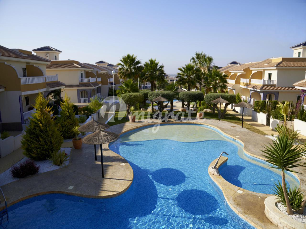 Таунхаус в урбанизации Донья Пепа, Сьюдад-Кесада. Салон с обеденной зоной, кухня, 2 спальни, 2 ванные комнаты, терраса, участок 35 м2. Общая площадь 82 м2. В комплексе есть общий бассейн и парковочное место.Урбанизация Донья Пепа является частью городка Сьюдад-Кесада (CiudadQuesada). Это место, где проживают представители всех европейских стран. Здесь есть магазины, рестораны и кафе, поликлиника, языковый центр «Берлингуа», 3 аптеки и оптика, 4-звездочный отель «Ла-Лагуна» с прекрасным СПА, рестораном и пиано-баром. Лишь в 4 км находятся лучшие на Коста-Бланке песчаные пляжи Гуардамара. Международный аэропорт Аликанте в 30 км. В городке Сьюдад-Кесада есть собственный аквапарк, гольф-клуб «Ла-Маркеса», теннисные корты, спортзалы, муниципальный культурный центр с библиотекой, классами для изучения испанского языка и различными клубами по интересам. Совсем рядом расположена уникальная природная «достопримечательность» – национальный заповедник со знаменитыми соляными озерами.
