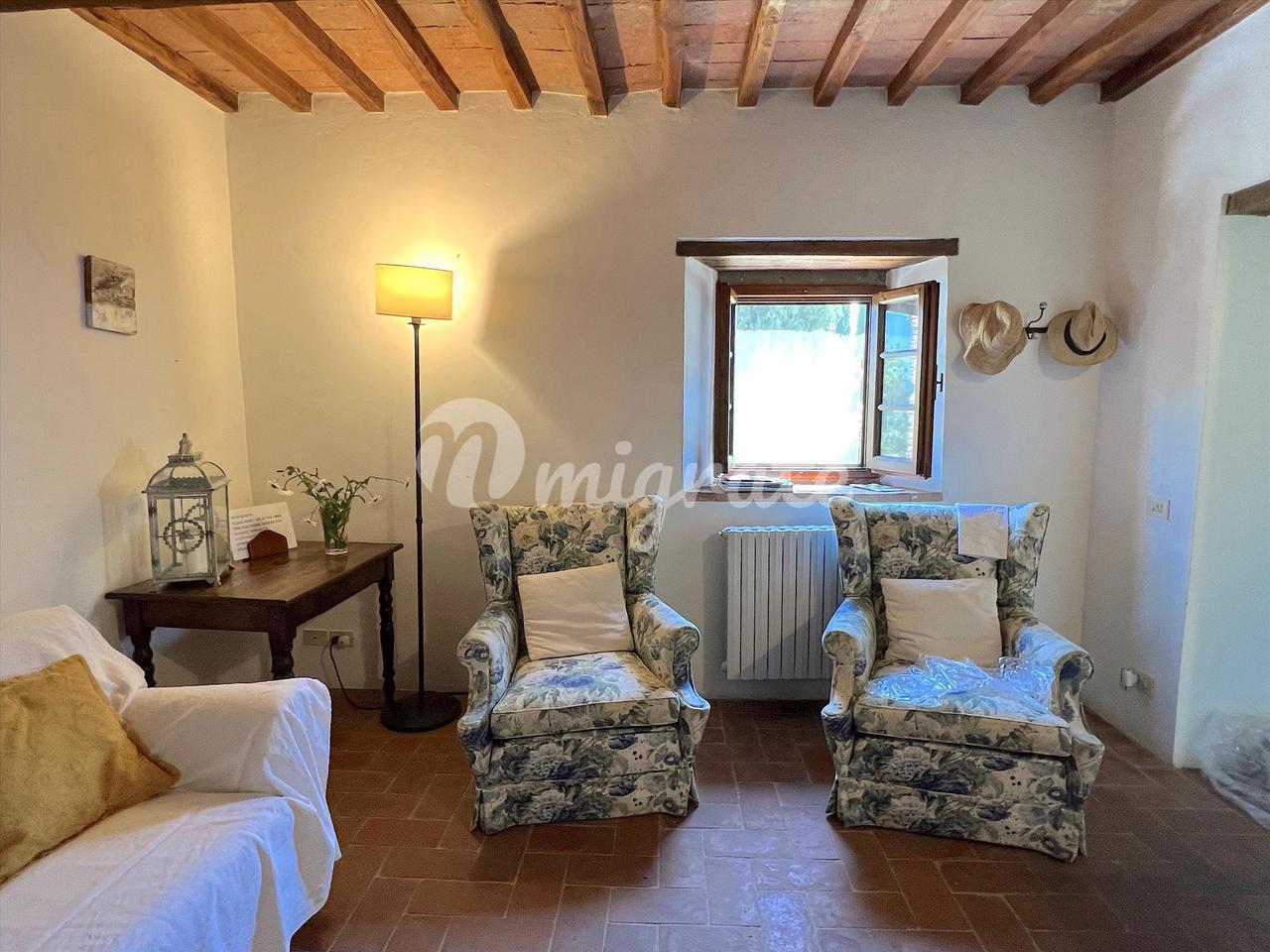 Расположенное в красивой, тихой сельской местности, всего в нескольких километрах от города Тавернелле-Валь-ди-Пеза, это старинное и красивое здание было со вкусом отреставрировано нынешними владельцами, чтобы превратить его в большой семейный дом площадью около 400 кв.м. Жилье включает в себя в общей сложности 7 спален и 7 ванных комнат, главную кухню, ведущую на террасу, и несколько комнат для приемов. Ремонт был выполнен с использованием местных материалов простым, но стильным способом. Вспомогательный блок нуждается в некоторой модернизации.