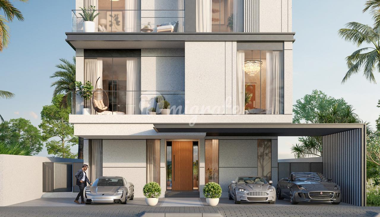 Таунхаусы поставляются с панорамной гостиной, террасой, частным задним двором, джакузи и бассейном. Площадь резиденций визуально увеличивается за счет панорамных окон и стеклянных дверей.