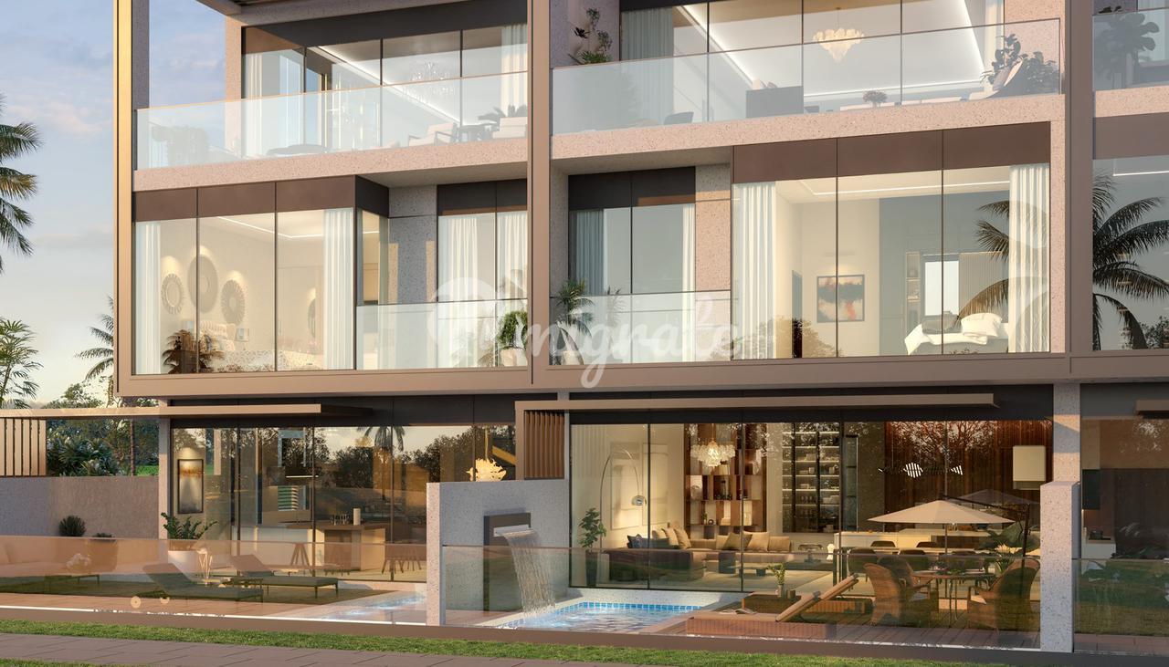 Таунхаусы поставляются с панорамной гостиной, террасой, частным задним двором, джакузи и бассейном. Площадь резиденций визуально увеличивается за счет панорамных окон и стеклянных дверей.