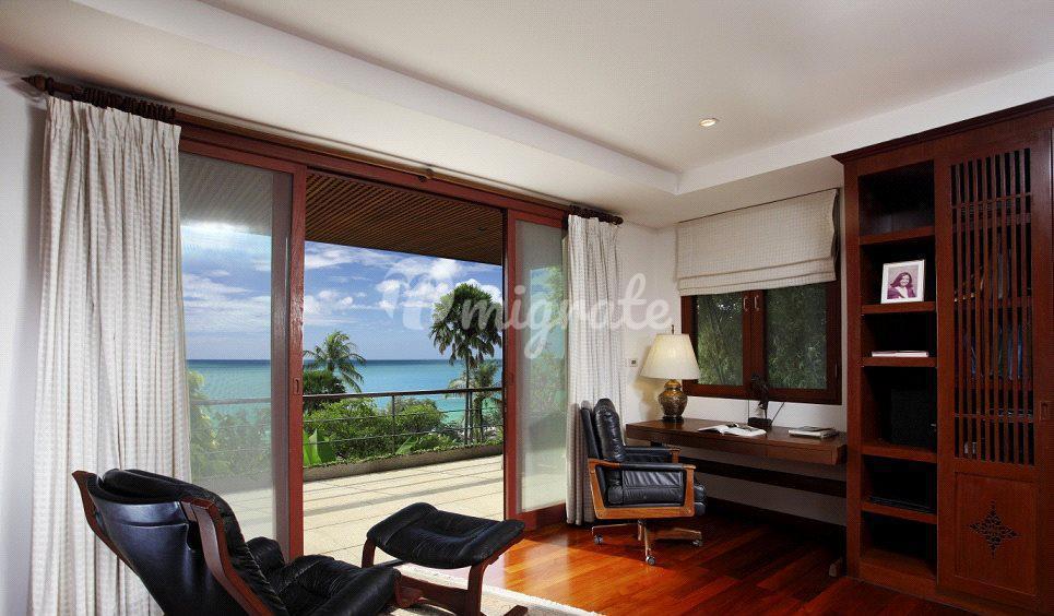 Эта вилла расположена высоко на холме Сурин с потрясающим видом на Андаманское море и пышные сады. Очень престижно, в отличном месте над пляжем Сурин. - 4 спальни, все с ванными комнатами (2 с джакузи). 1 комната оборудована под кабинет - 1 большая гостиная/столовая с высоким потолком - 1 большой зимний сад - Бассейн (11 м х 5 м в самом широком месте) - Кухня, комната для прислуги, гараж на 2 машины - 2 кладовые, много балконов - Большая площадь под бассейном легко трансформируется в дополнительные комнаты - Площадь участка: 1 344 кв.м. - Застроенная площадь: 1088 кв.м. - Закрытые помещения (плюс зал): 317 кв.м.