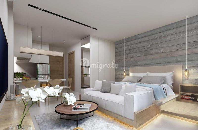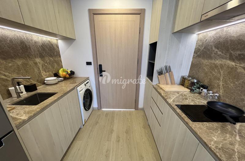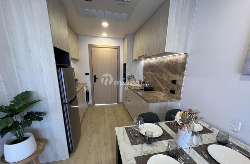 Квартира-студия расположена на четвертом этаже комплекса. Сдается в эксплуатацию с ремонтом и со встроенной мебелью. Полную меблировку или мебельный пакет можно приобрести у застройщика за 350.000 бат