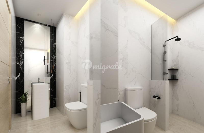 Тип А Это четырехэтажная вилла общей площадь 493,6 кв.м. 4 спальни /5 ванных комнат 1 многофункциональная комната Вилла оборудована лифтом Крытая парковка на 2 автомобиля Уникальной особенностью виллы